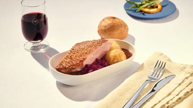 Auf Kurz- und Mittelstrecken kann derzeit der „Oktoberfest Moment“ vorbestellt werden, zu der bayerischen Brotzeit gehören Fleischküchle, Kartoffel-Gurkensalat, Feld- und Spitzkohlsalat, Rettich, Radieschen und Senf. Dazu kommt eine Laugenstange mit Obazda sowie ein Bier bzw. ein alkoholfreies Getränk. In der Business Class werden ebenfalls kalte Wiesn-Platten serviert, auf längeren Flügen können Gerichte wie die Wiesn-Ente oder das Backhendl ohne Aufpreis vorbestellt werden. Die aktuellen Onboard Delights (Buy on Board) findet Ihr hier.