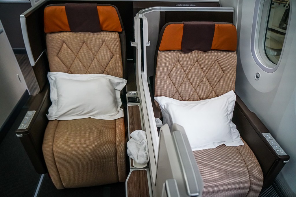 In der Business Class der Boeing 787 ist bisher die Apex Suite verbaut. Obwohl es eigentlich eine 2-2-2 Konfiguration ist, haben alle Plätze direkten Zugang zur Mittelgang. Einen Review findet Ihr übrigens bei GlobalTraveler.tv.
