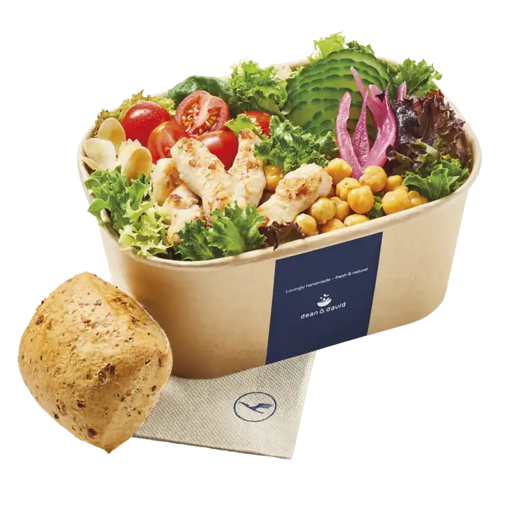 Als größere Mahlzeiten-Optionen gibt es einen Chicken Chickpea Salat oder die Falafel Humus Bowl, beide Produkte sind uns in der Vergangenheit schon irgendwo begegnet… Diese sind für jeweils 10,90€ bzw. 3.000 Meilen zu haben.