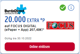 wann werden nach der Focus Abo Bestellung die 20.000 Payback Punkte dem Konto gut geschrieben?