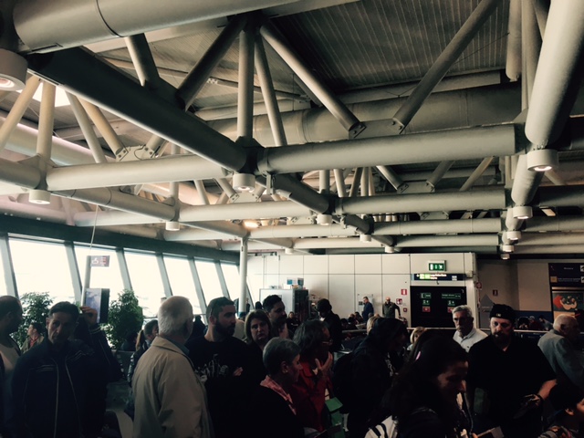 Das Boarding selbst war dann sehr italienisch und chaotisch. Mit etwa 20 Minuten Verspätung wurde ganz ohne Ansage einfach eine Seitentür am Gate geöffnet und mit dem Priority Boarding begonnen. Naja macht nichts, wir fliegen ja in den Urlaub.