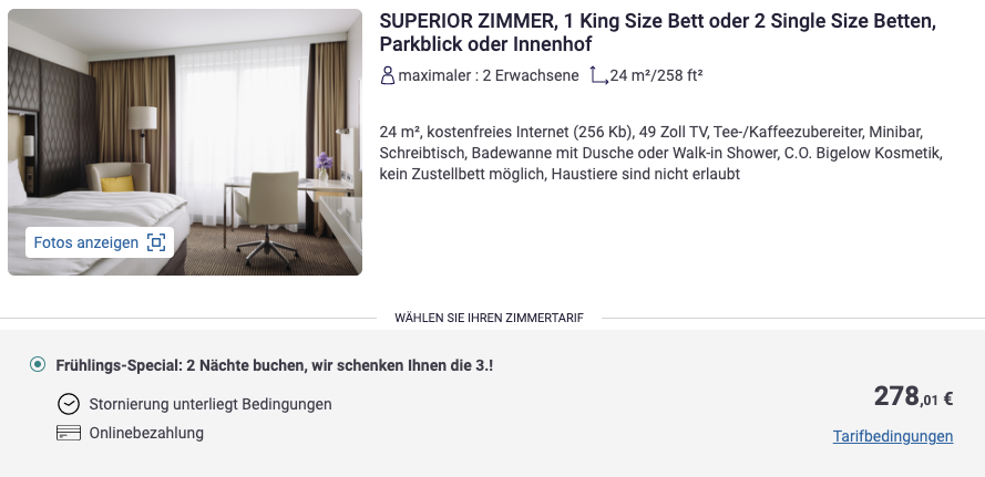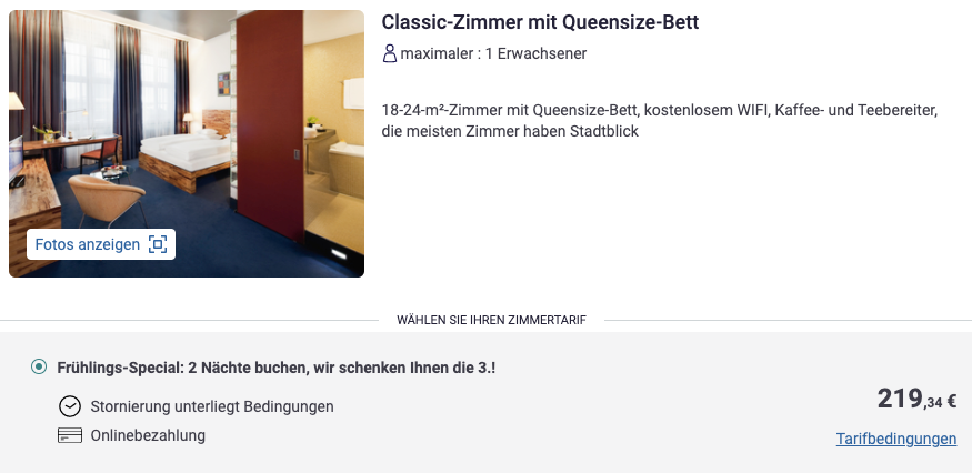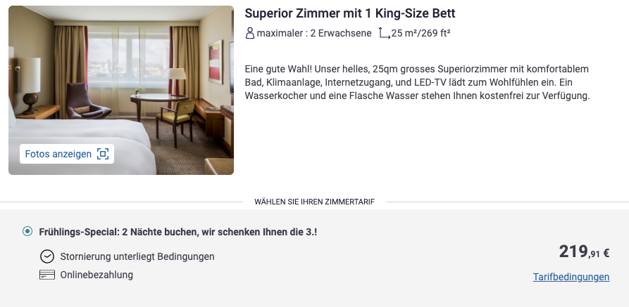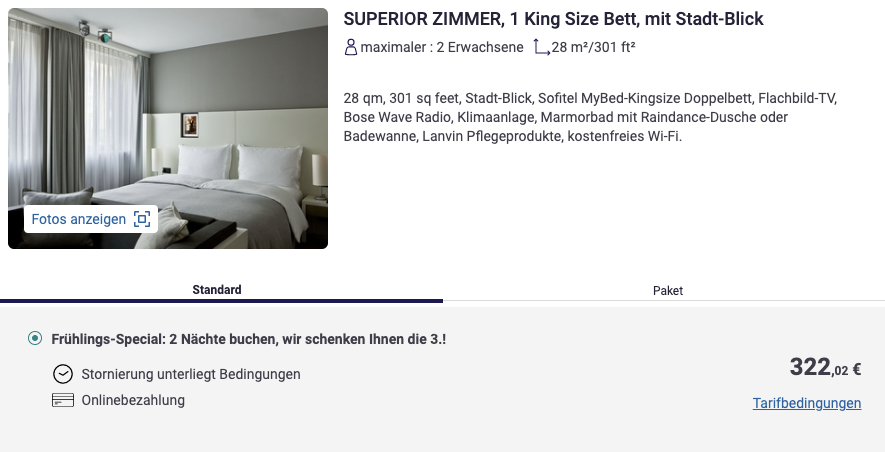 Das aktuelle 3 für 2 Angebot ist noch bis zum 25. März 2021 direkt bei Accor buchbar. Es ist gültig für Aufenthalte vom 26. März bis 1. September 2021 für eine Dauer von 3 Nächten.
