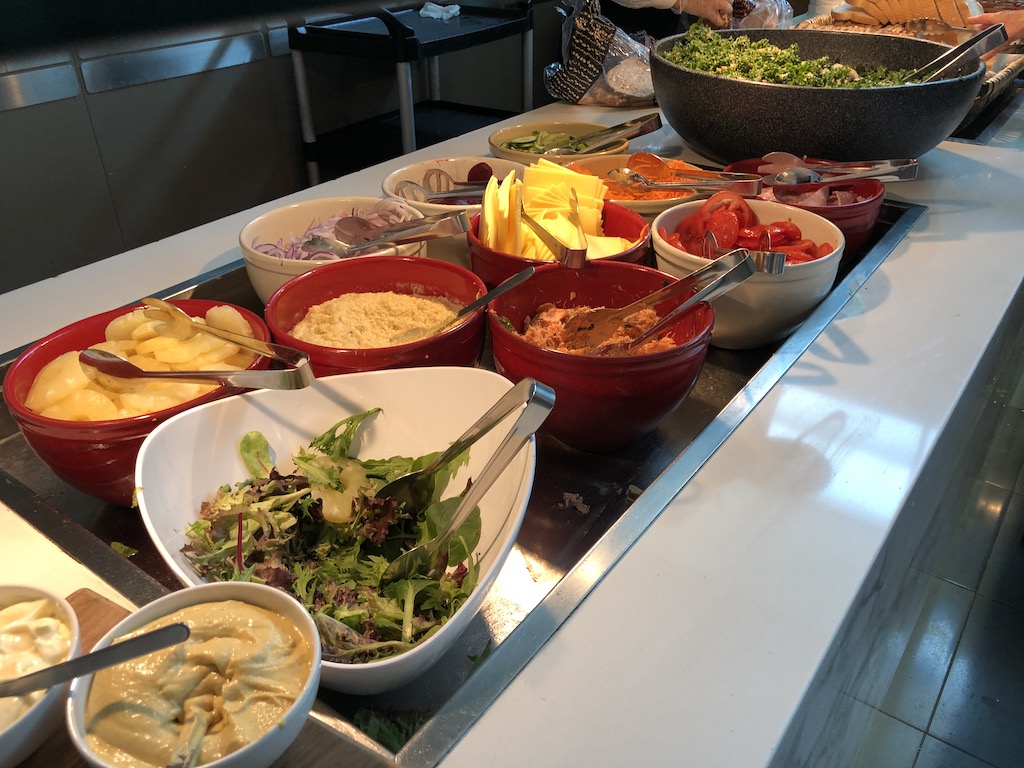 Die Kaffeespezialitäten sehen wirklich ansprechend aus und schmecken auch so. Am Buffet gibt es viele kalte Vorspeisen und einige warme Hauptgänge. Die Mitarbeiter waren sehr flink und haben permanent für Ordnung gesorgt. Für Umsteiger und solche die sich erfrischen möchten stehen auch mehrere Duschen zur Verfügung.