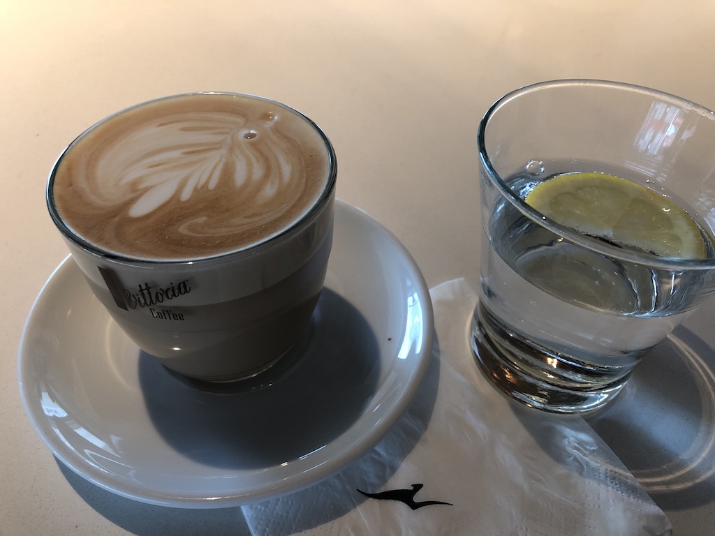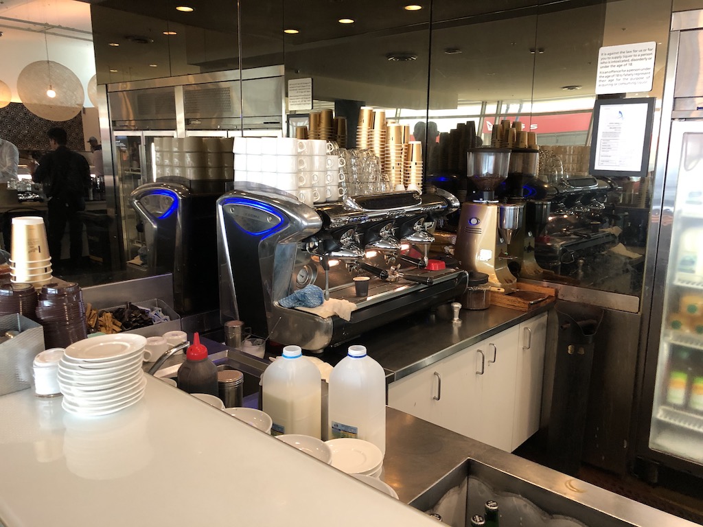 Ein Barista zaubert allerlei Kaffeespezialitäten, was sehr gut angenommen wird. Um die Schlange zu umgehen und schneller an Cappuccino, Flat White oder Latte zu kommen gibt es sogar eine App. So kann man seinen Wunsch übermitteln und zügig abholen, ein sehr nettes Gimmick.
