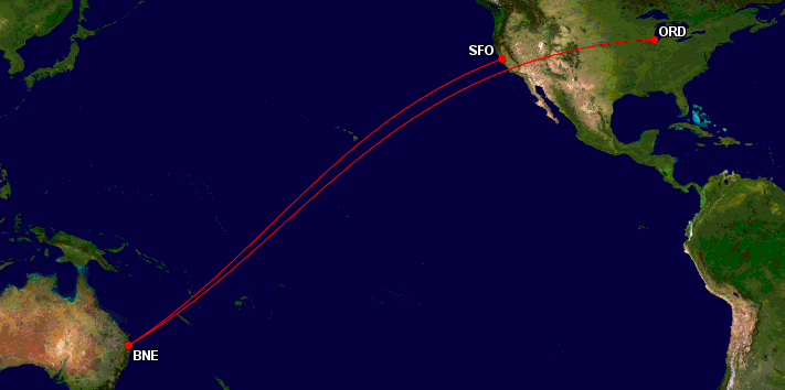 Während der Flug zwischen Brisbane und San Francisco mit etwas über 7.000 Meilen/ 11.200 Kilometern zwar sehr lang ist, ist er mit etwa 14 Stunden Flugzeit keiner der längste Flüge der Welt. Der Flug zwischen Brisbane und Chicago hingegen wird mit fast 9.000 Meilen/ 14.500 Kilometern und 17 Stunden Flugzeit etwa genau so lang sein, wie der Flug zwischen Perth und London und nur 800 Kilometer kürzer als der aktuell längste Flug der Welt zwischen Singapur und New York/ Newark.