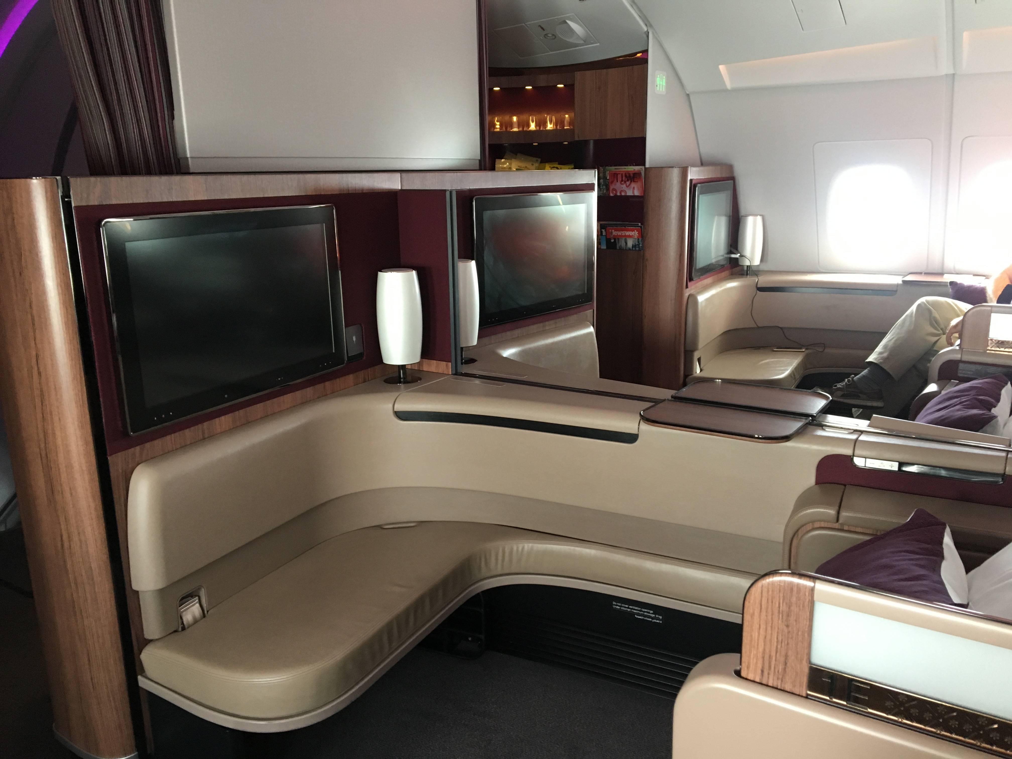 Gigant der Lüfte, Flaggschiff, ultimatives Reiseerlebnis: solche und ähnliche Töne kamen aus Doha als Qatar Airways den Airbus A380 in Betrieb genommen hat. Wie bei den Konkurrenten Etihad und Emirates hat auch Qatar bei der Ausstattung nicht gekleckert. Jede der drei großen Golf-Airlines hat beispielsweise eine Bar im Oberdeck installiert und damit einen Meilenstein für Reisen in First und Business Class gesetzt.