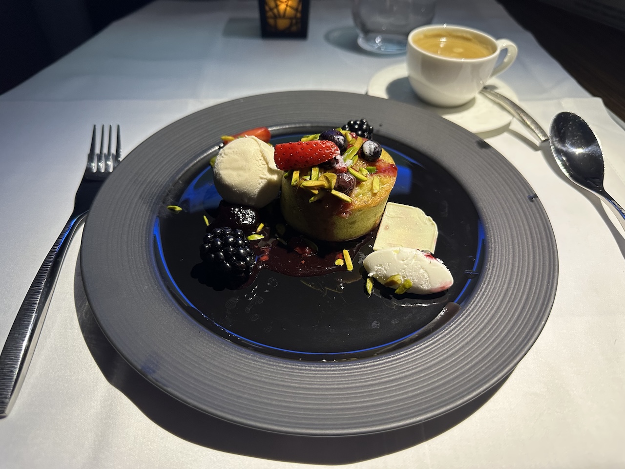 Die Präsentation war durchgehend ansprechend, das Geschirr wirkt wirklich edel. Wer auf einem Flug, der nur 6,5 Stunden dauert noch mehr Hunger hat, darf noch aus der Snackkarte bestellen. Ach ja, Frühstück hätte es zum Start auch noch gegeben, aber ich wollte zunächst lieber zwei Stündchen schlafen…