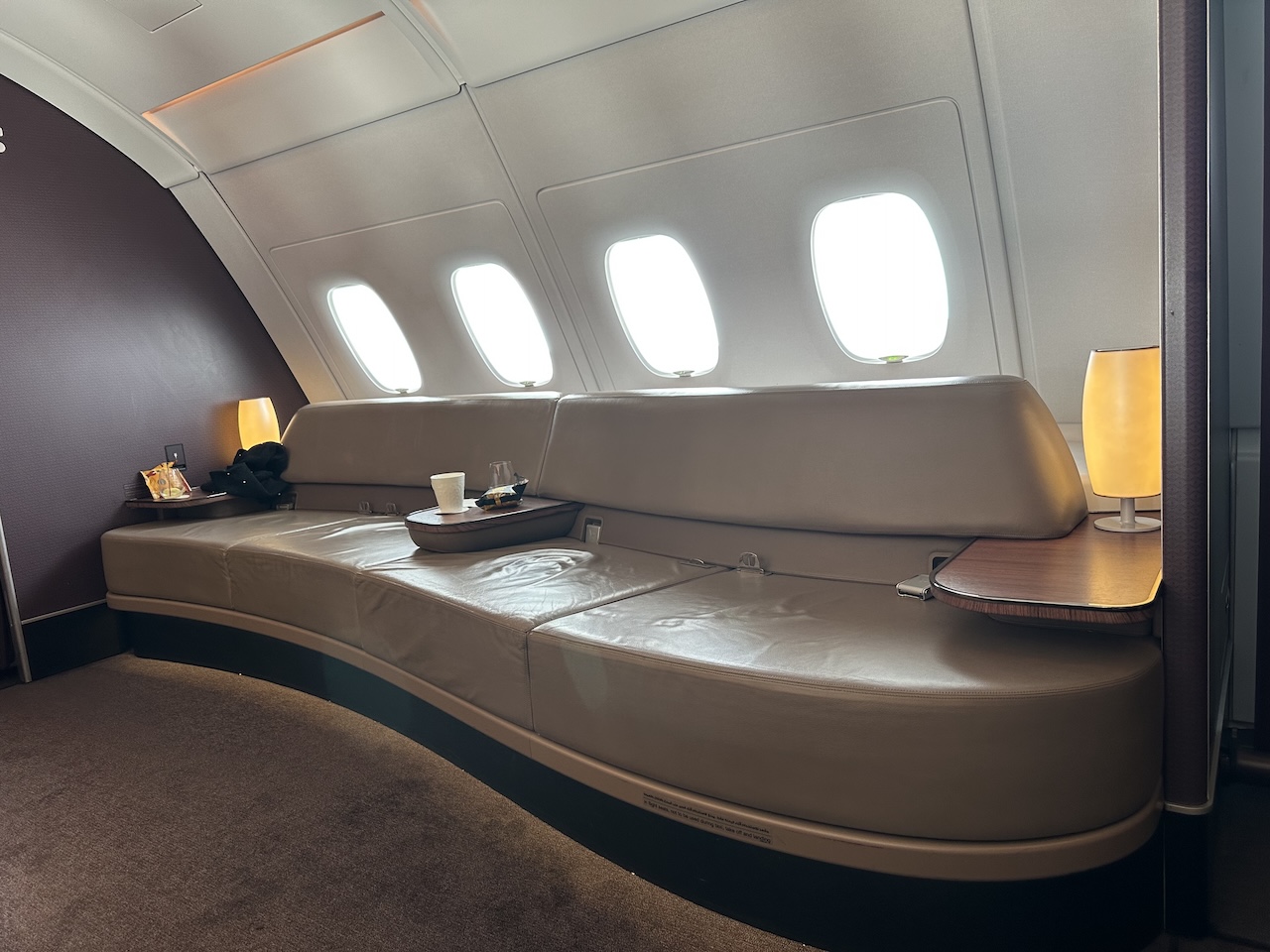 Das Produkt im Airbus A380 kommt langsam etwas in die Jahre, die Bar ist hingegen ein absolutes Highlight. Ein toller Ort um insbesondere auf sich auf den längeren Flügen die Beine zu vertreten, ins Gespräch zu kommen oder bei einem Drink zu entspannen.
