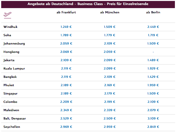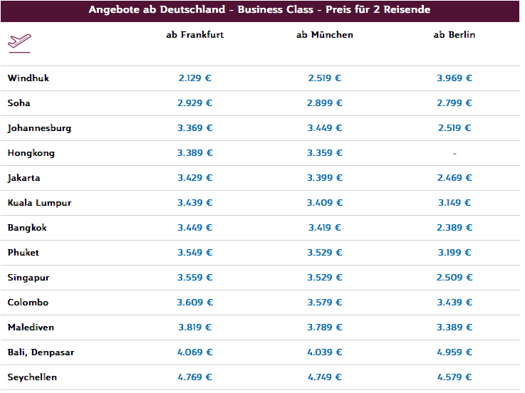 Qatar Business Class Angebote ab Deutschland | Frankfurtflyer Kommentar