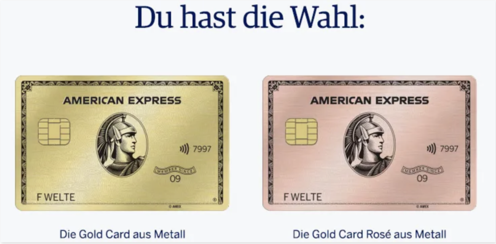 Zusätzlich wird sich die American Express Gold Karte auch optisch verändern, denn sie wird fortan als Metallkarteausgegeben. Hier kann man wählen, ob man sie in Gold-Option oder in Rosé-Gold-Optik haben will. In ihren Leistungen unterscheiden sich die beiden Karten nicht – lediglich in der Farbgebung, je nach Geschmack.