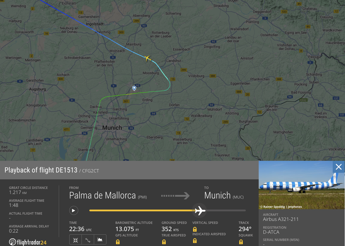 Der Airbus A321 mit der Kennung D-ATCA startete am 2. Juni schon am Morgen mit einer Verspätung in Hamburg. Die Verzögerung von über einer Stunde konnte auch im weiteren Tagesverlauf nicht mehr aufgeholt werden – im Gegenteil. Denn der letzte Flug des Tages startete über zwei Stunden später als ursprünglich geplant. Eigentlich sollte die Maschine um 22:40 Uhr in München landen, doch um diese Zeit bewegte sich der Airbus erst zur Startbahn in Palma.