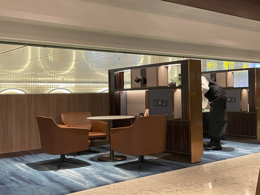 Falsch gedacht, denn beim Check-In in der Lounge wurden wir zunächst in die Business Class Lounge gebracht, wo sich eine freundliche Mitarbeiterin um unsere Bordkarten kümmern sollte. Doch das wurde zur Herausforderung. Eine Ausstellung des kleinen Zettels für den Flug nach Mumbai war nicht möglich. So begleitete man mich zum Transfer Desk, während meine Frau es sich im Private Room gut gehen ließ.
