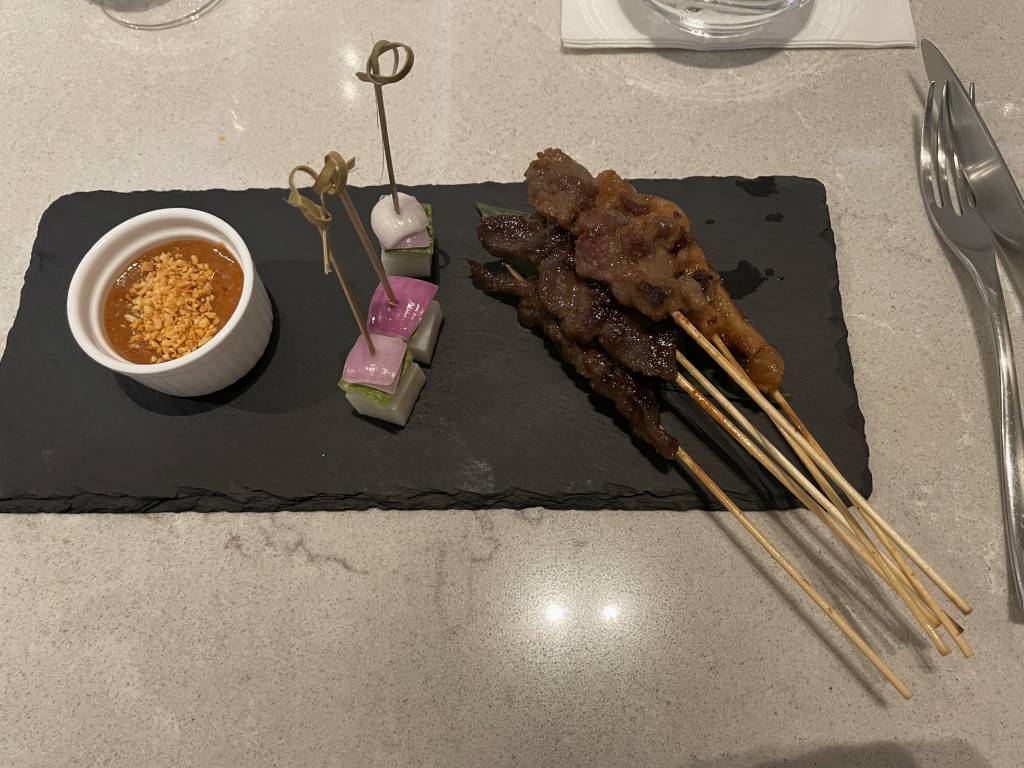 Von nun an verbrachten wir Stunden zwischen Diskussionen und Beweisführung mit unterschiedlichen Verantwortlichen bei Singapore Airlines. Immer wieder zwischen exklusiven Champagnern wie Taittinger Comtes, Charles Heidsieck Blanc des Millénaires und Geoffroy Expression Brut und herausragenden Speisen, namentlich assorted Satay, Meeresfrüchte Pao Fan und Wagyu Burger. Was ich zu keinem Zeitpunkt voll genießen konnte, da ich an diesem Punkt unserer Reise gerne gewusst hätte, wie es nach Hause geht.