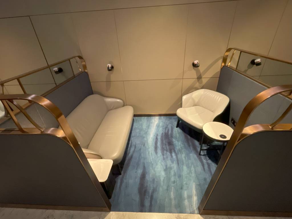 Irgendwann hatte mich die Kombination aus unbegrenztem Jahrgangschampagner und Unsicherheit so umgehauen, dass ich eine Pause brauchte. Die Ruheräume im Private Room waren alle belegt, sodass mich das Team von Singapore Airlines in der „normalen“ First Class Lounge einquartierte. Bis ich einschlief, dauerte es wohl nur Sekunden.