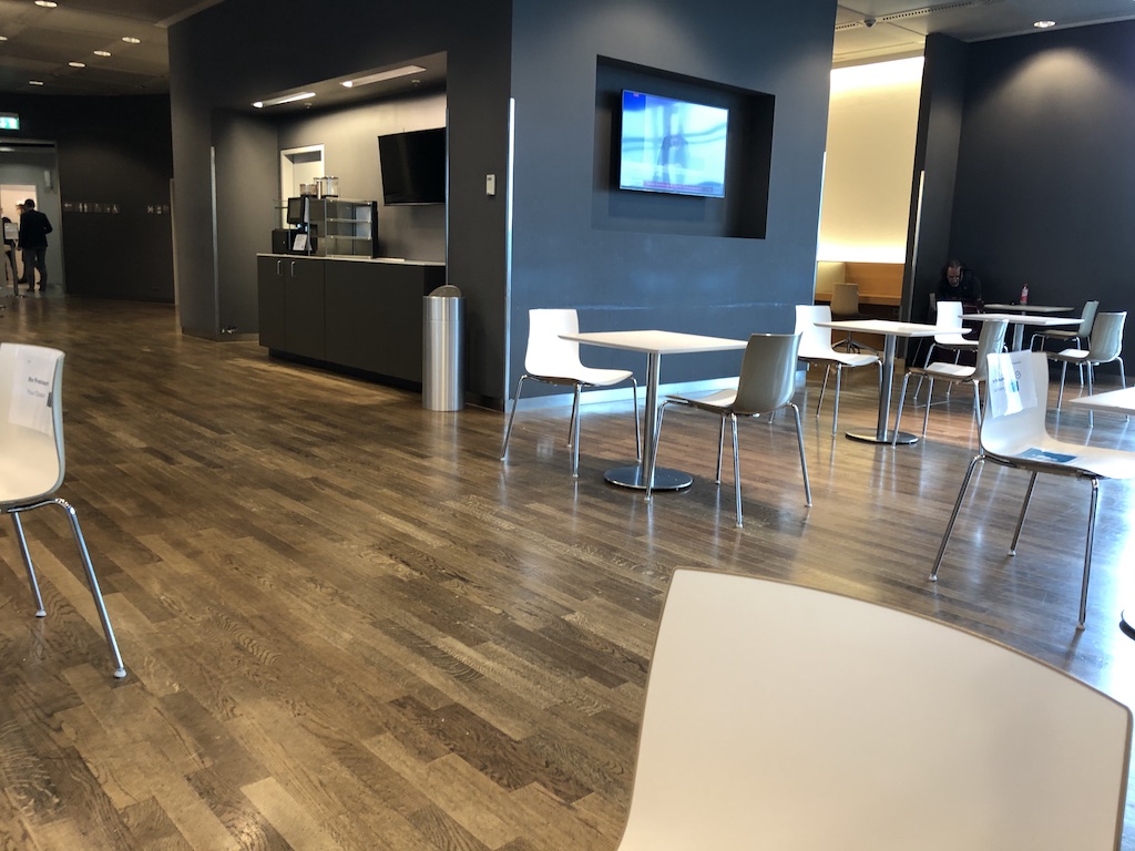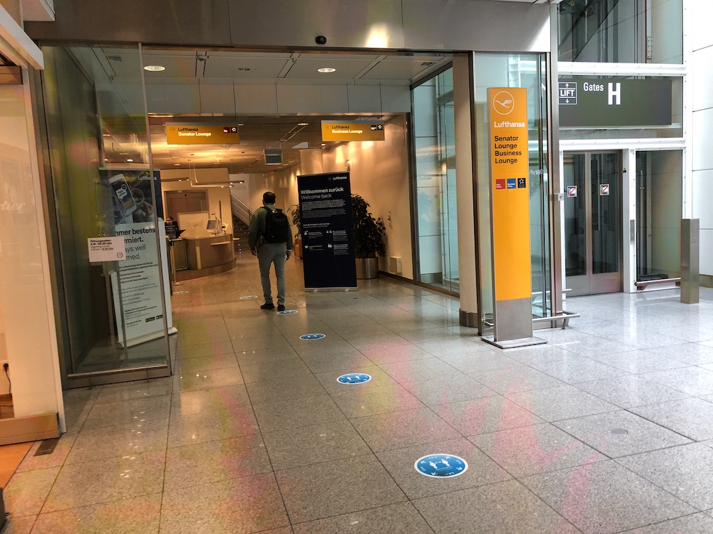Dadurch dass nun alle Statuskarteninhaber wie Frequent Traveller und Star Alliance Gold Mitglieder sowie Reisende der First- und Business Class Zutritt haben, kommt es trotz ausgedünntem Angebot zu Stoßzeiten. Heute war es beim Betreten ruhiger, die Mitarbeiter sind hinter Plexiglas und Fluggäste scannen die Bordkarte selbst. Oben nimmt ein Mitarbeiter die Gäste in Empfang und beantwortet Fragen zum Angebot und der Maskenpflicht.