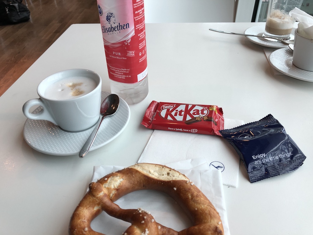 Kleine Wasserflaschen darf man sich selbst nehmen, offene Getränke werden auf Wunsch ausgeschenkt. Dazu gehören auch Heißgetränke. Man möchte einen Andrang vermeiden und Kontakte mit Behältern oder Tasten minimieren. Morgens könnte es aber durchaus zu Problemen kommen, wenn zeitgleich mehrere Flüge abgefertigt werden und der Kaffeedurst am größten ist.