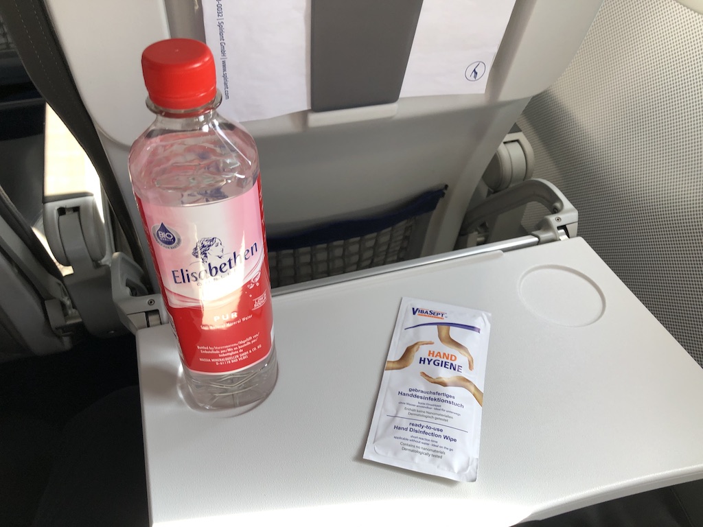 Bei nicht ausgebuchten Flügen hat man mit Glück einen freien Nebensitz, die Chancen sind hier bei einem Maschinentyp wie dem A319 etwas höher. Aber auch mit diesem Flugzeug gibt es zur Zeit hin und wieder volle Flüge. Das Bordmagazin wurde genauso wie Decken und Kissen aus den Flugzeugen verbannt. Lediglich auf längeren Flügen soll es Decken geben. Während des Fluges wird dann eine Wasserflasche gereicht.