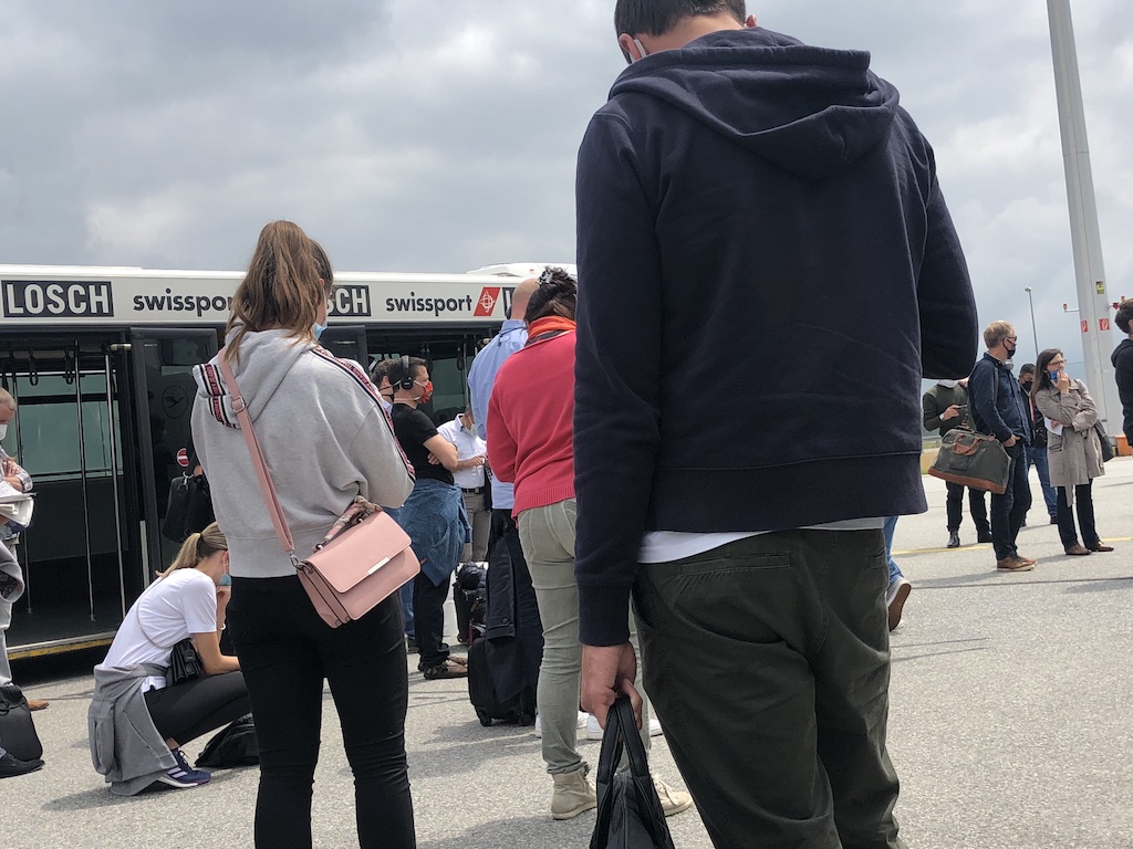 Ansagen zu den geltenden Maßnahmen sind immer wieder zu hören, am Gate gibt es zum Boarding weitere Hinweise. Je nach Position und Flugzeugtyp erfolgt der Zugang über eine Fluggastbrücke, mit dem Bus oder gar zu Fuß. Ich hatte auf dieser Rennstrecke bereits alle Varianten, die Vorgaben für Passagiere wurden meist eingehalten.