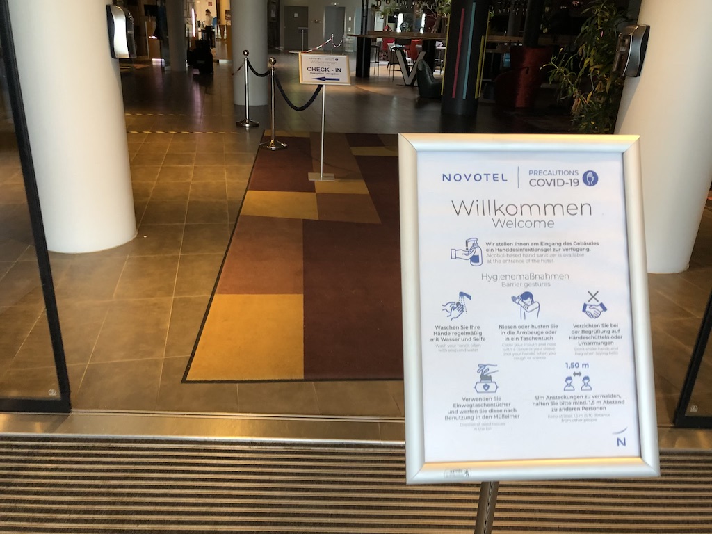 Das Reiseaufkommen befindet sich noch immer auf dem Tiefstand, es geht nur langsam wieder bergauf. Viele Hotels haben geschlossen, andere sind unter Auflagen eingeschränkt geöffnet. Das Novotel Munich Airport gehört dazu, es ist geöffnet und über die gewohnten Kanäle buchbar. Auf insgesamt vier Etagen verteilen sich mehrere Hundert Zimmer, aktuell wird nur die erste Etage genutzt und belegt. Es gibt Plexiglasscheiben, Desinfektionsmittel, wie in Supermärkten gelten Abstandsregeln und Maskenpflicht. Weitere Einschränkungen:
