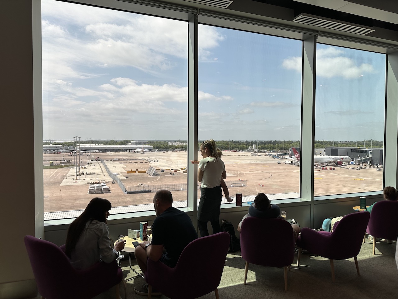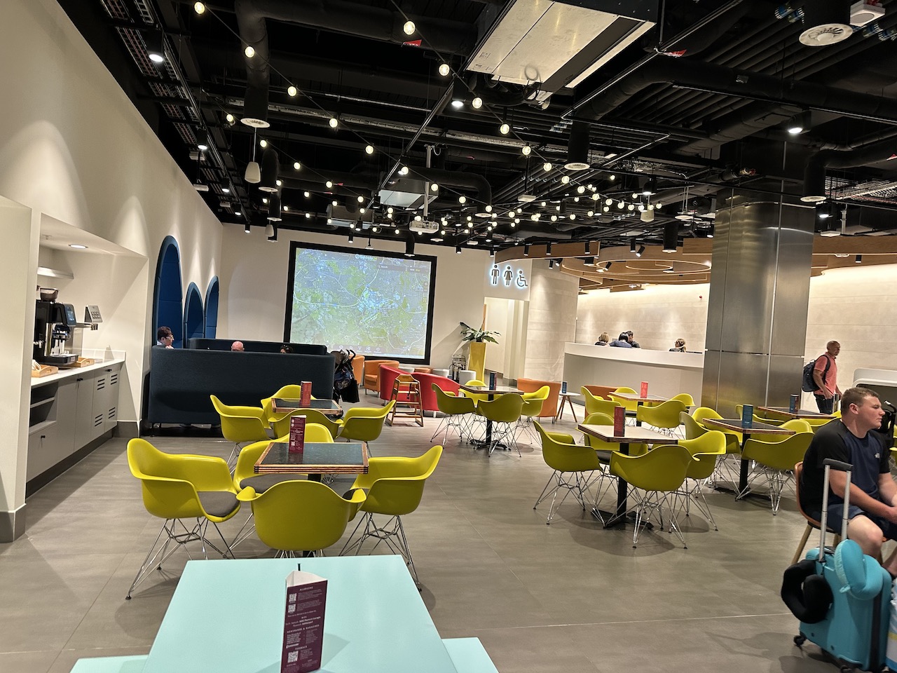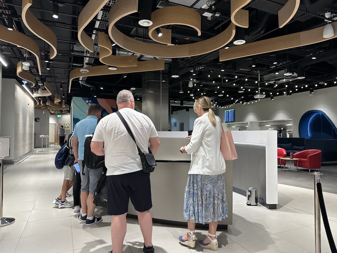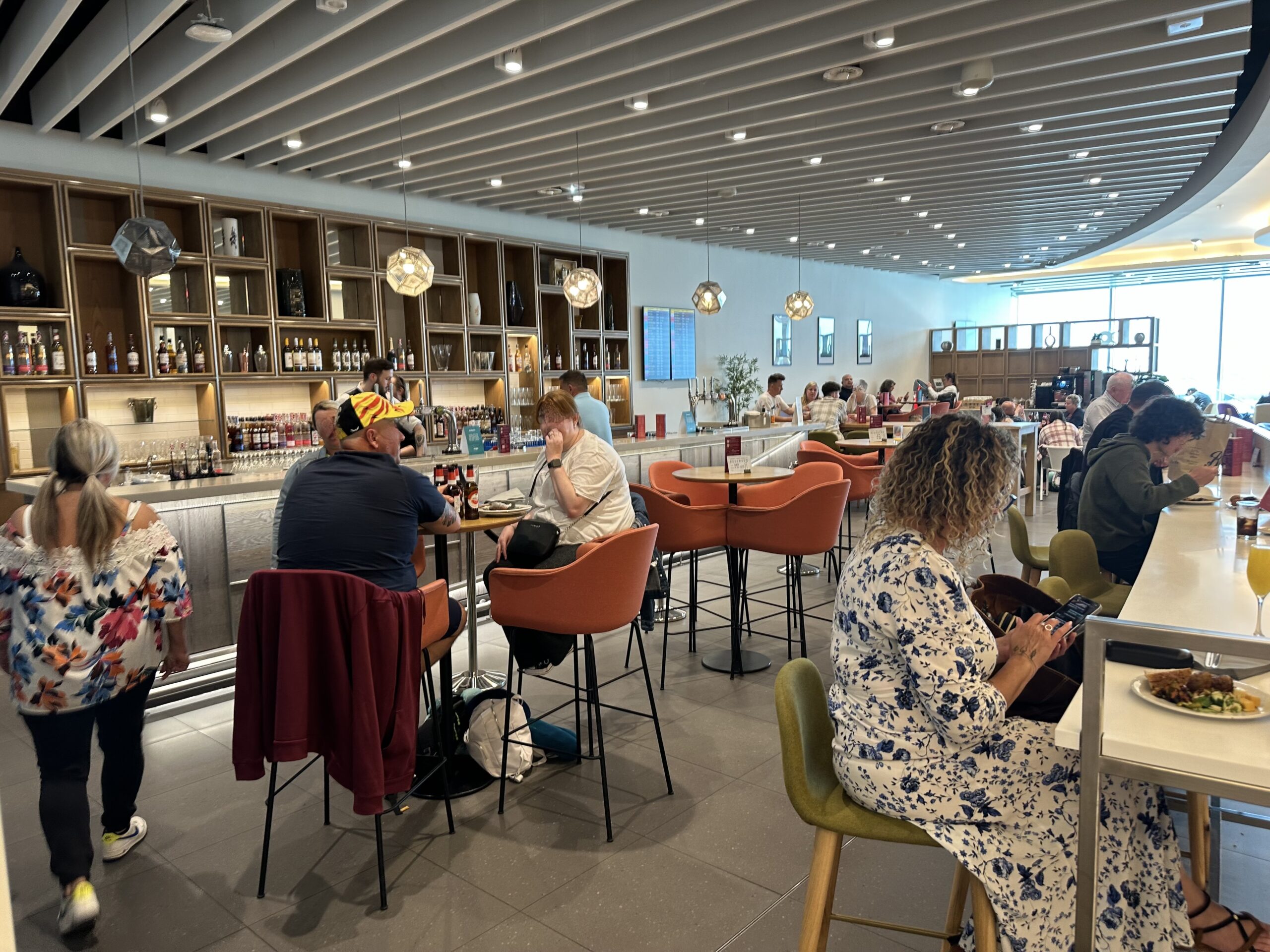 Mit der Stromversorgung war es so eine Sache – die britischen Steckdosen waren etwas rar gesät. Viele Tische waren reserviert und beispielsweise nur für die Premiumkunden von Qatar Airways oder Virgin Atlantic vorgesehen.