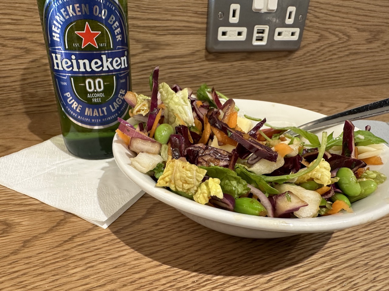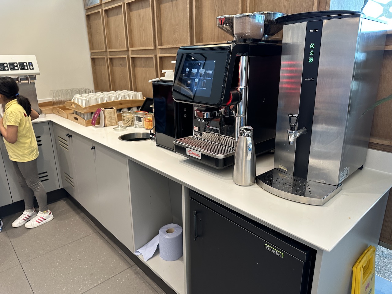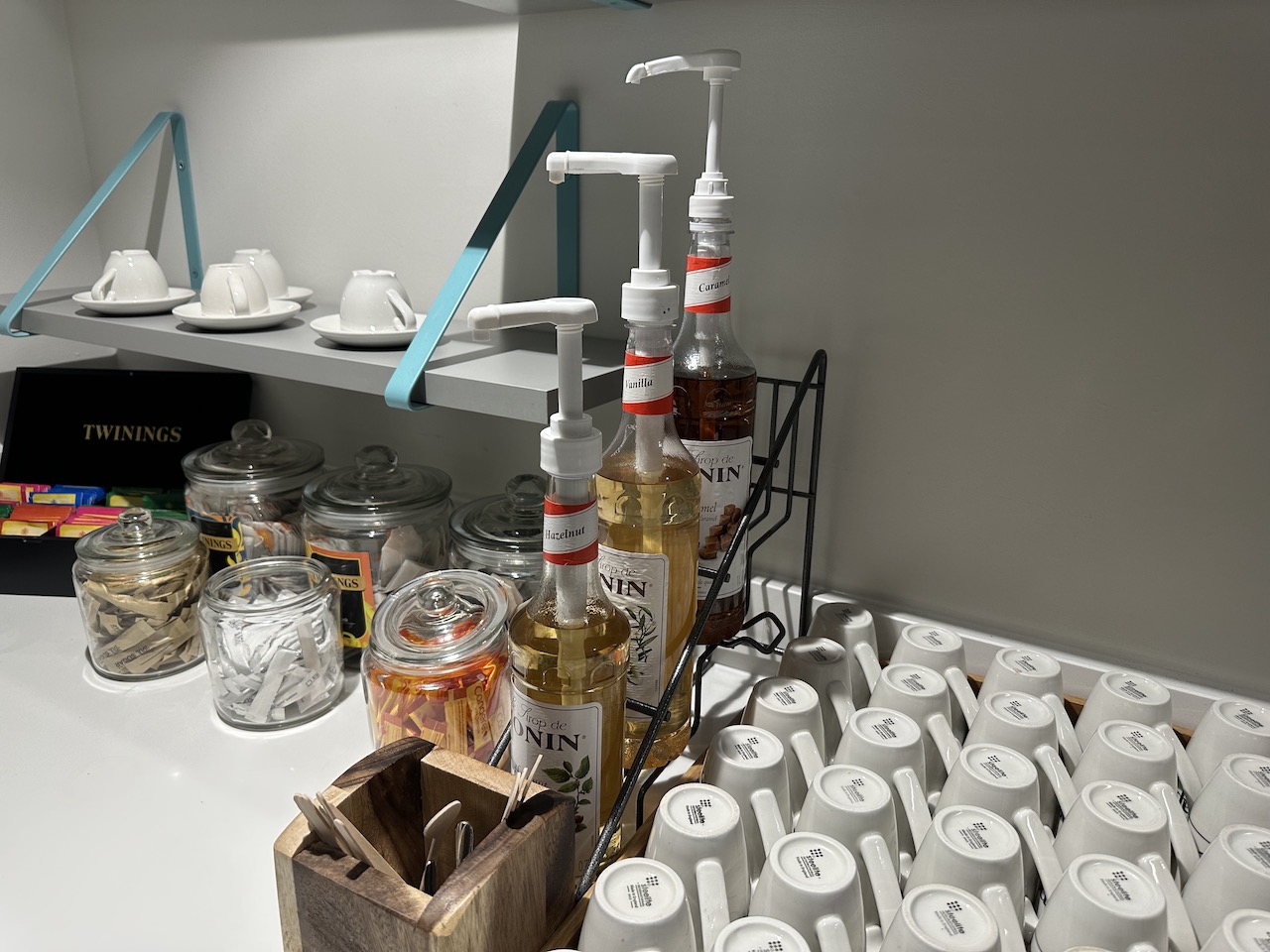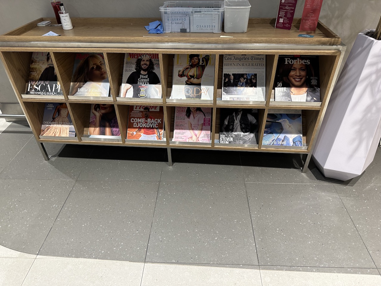 Mit der Stromversorgung war es so eine Sache – die britischen Steckdosen waren etwas rar gesät. Viele Tische waren reserviert und beispielsweise nur für die Premiumkunden von Qatar Airways oder Virgin Atlantic vorgesehen.