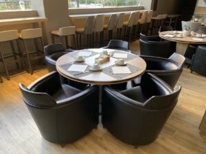 Der Frühstücksraum an sich befindet sich gleich neben der Lobby und an der Bar. Im Sommer gibt es bestimmt auch die Möglichkeit im Innenhof sitzen zu können, aber auch so gab es viele Möglichkeiten einen Platz für seine Bedürfnisse zu finden.