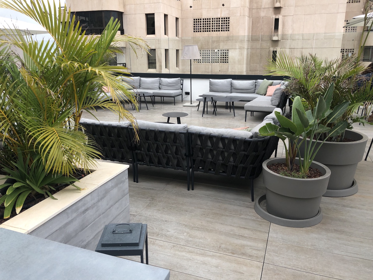 Die Rooftop-Bar ist gleich neben dem Pool gelegen und ist stilvoll ausgestattet. Indirekte Beleuchtung ist auch hier vorhanden. Loungemusik sorgt für eine entspannte Atmosphäre.