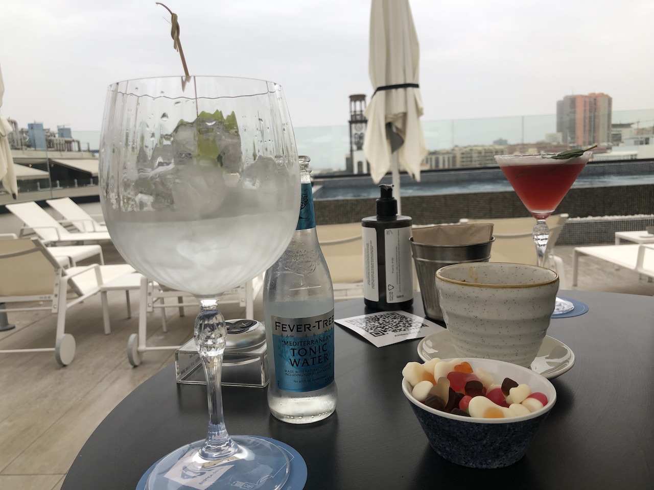 Einen kleinen Wermutstropfen gab es allerdings später bei der Bezahlung unserer Bar-Rechnung. Denn der (teurere) Haus Gin&Tonic scheint ohne Tonic zu sein. Dieser musste noch extra bezahlt werden – womit sich der Preis auf über 17€ erhöhte. Immerhin waren dies knapp 8€ mehr als der „Standard“ Gin&Tonic. Allerdings wurden uns Oliven und Gummibärchen ohne weitere Berechnung zu unseren Getränken serviert. Der Geschmack der Drinks war indes hervorragend.