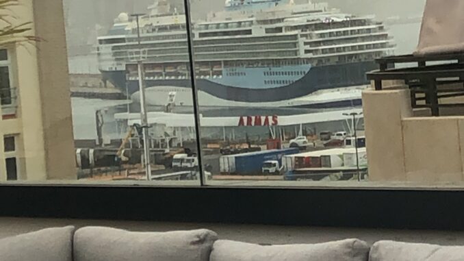 Der Pool ist im obersten Stockwerk gelegen und bietet eine schöne Aussicht auf die Altstadt von Santa Cruz und den Kreuzfahrt-Hafen.