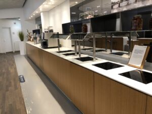 Der Check-In fand in der Halle B in Frankfurt statt, das Abfluggate war bei A38. Auf dem Weg dahin blieb noch genügend Zeit für die Lufthansa Lounge, in der man man leider noch nicht wieder essen und trinken durfte. Der Hunger hielt sich jedoch in Grenzen, ein Kaffee und ein Snack auf die Hand waren beim Verlassen der Einrichtung für uns an diesem Morgen ausreichend.