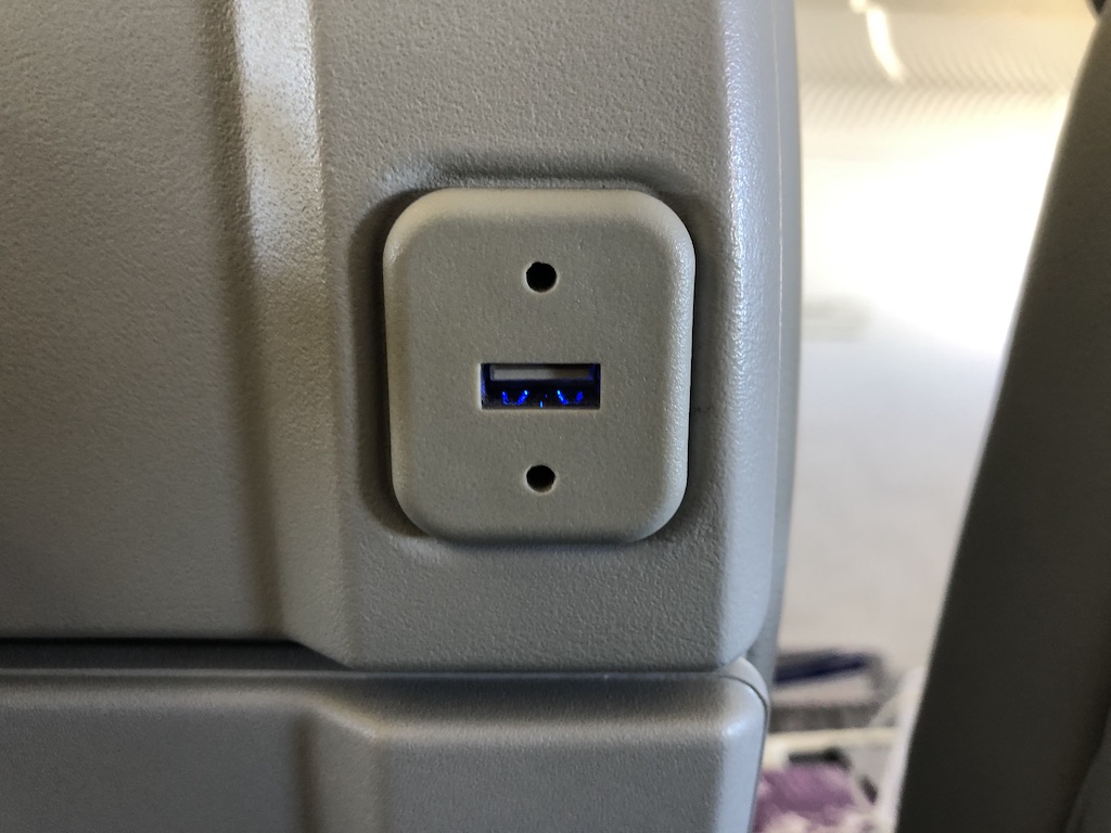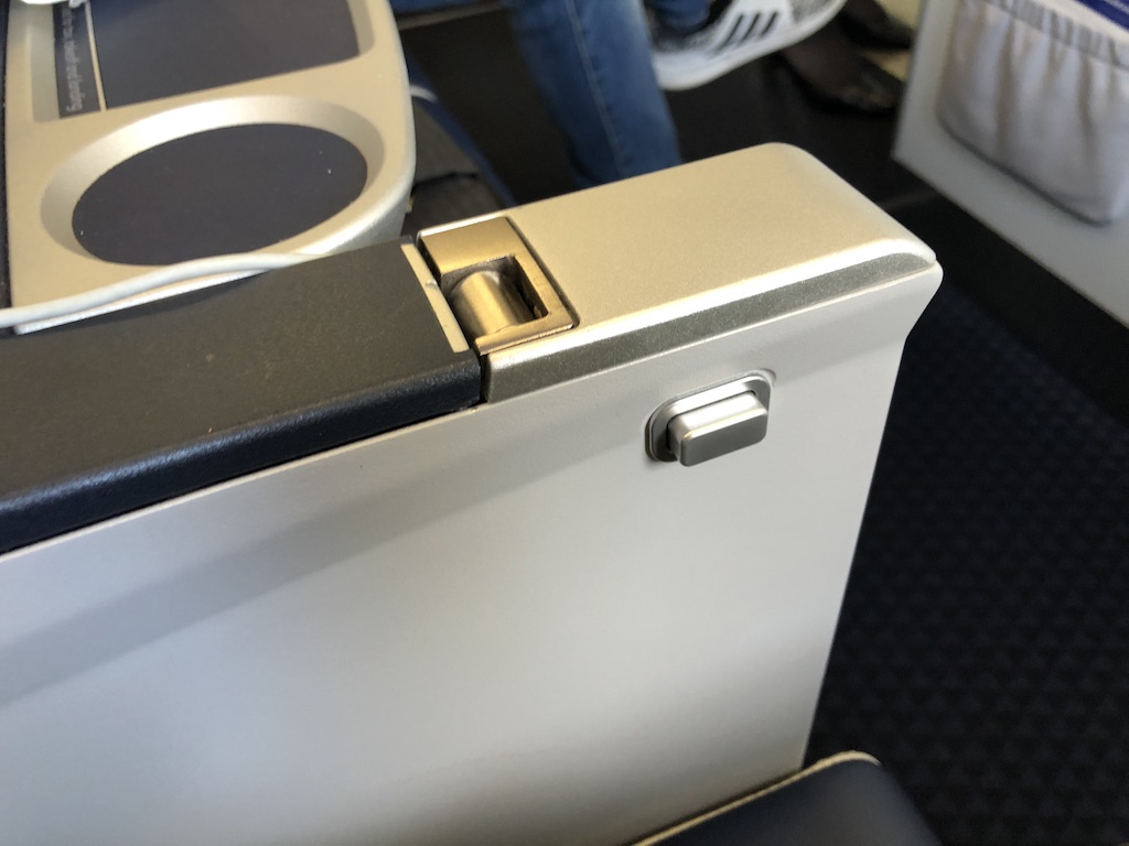 An den Sitzen gibt es nun USB-Anschlüsse, die im Flug aktiviert werden. Ich war zwar mit einer Powerbank auf den Flug vorbereitet, habe diese aber nicht benötigt. Ein zusätzliches Feature wurde in die Tische installiert, dort findet man nun eine Halterung für Smartphones und Tablet-Computer.