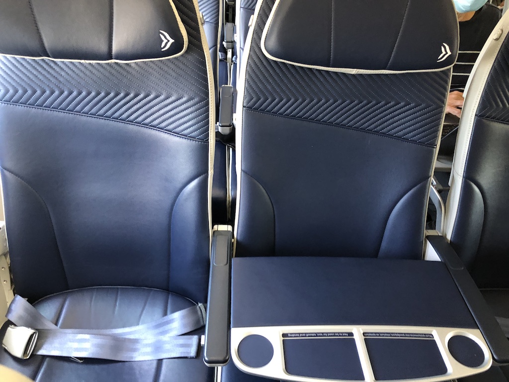 Die verantwortlichen Produktentwickler haben sich viele Gedanken gemacht. Airlines haben durchaus zahlreiche Möglichkeiten auch ein Schmalrumpfflugzeug komfortabel auszustatten. Eine richtige Business-Bestuhlung hat innerhalb von Europa zwar Seltenheitswert, mit der Krise wird sich das auch auf lange Sicht wohl nicht ändern. Aegean bietet in der Premium-Klasse die üblichen Economy-Stühle mit geblocktem Nachbarsitz an.