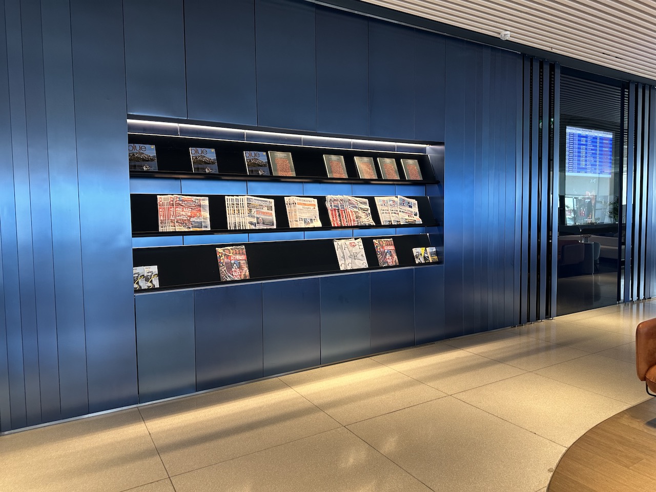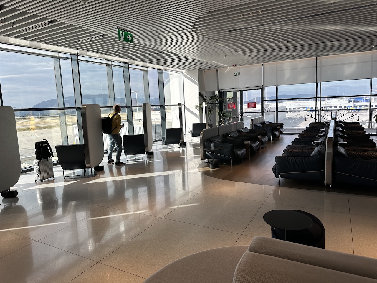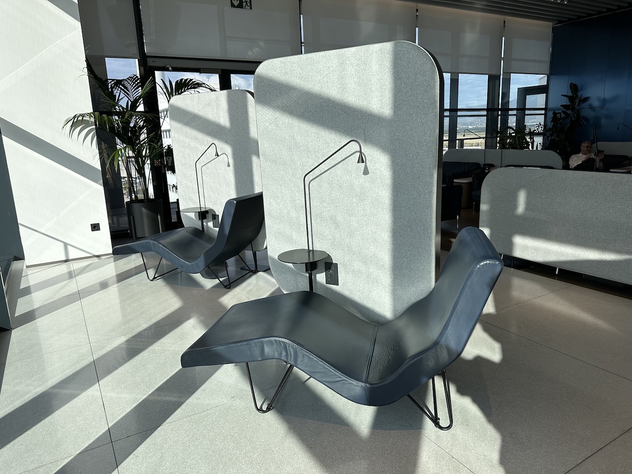 Wir sind an einem Freitag Morgen geflogen und fanden eine leere, saubere und moderne Lounge vor. Diese besteht quasi aus einem einzigen großen Raum, dank Raumteiler und verschiedenen Zonen haben sich die Besucher dort schon beinahe etwas verloren.