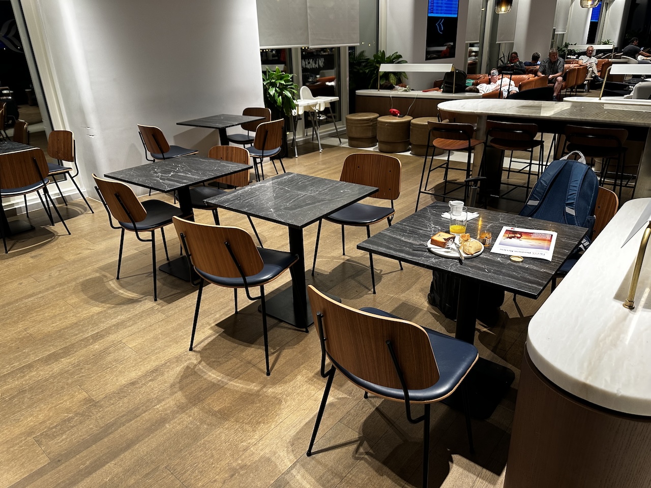 In der Schengen Lounge ist es gefühlt leider etwas enger als beispielsweise bei non-Schengen oder in Thessaloniki. Die alte Lounge war noch nicht wirklich in die Jahre gekommen, die Renovierung macht dennoch einiges her. Nun sind alle Einrichtungen der Airline im modernen Look und im aktuellen Design gehalten, erst im Juni wurde die Lounge in Larnaka auf Zypern neu eröffnet.