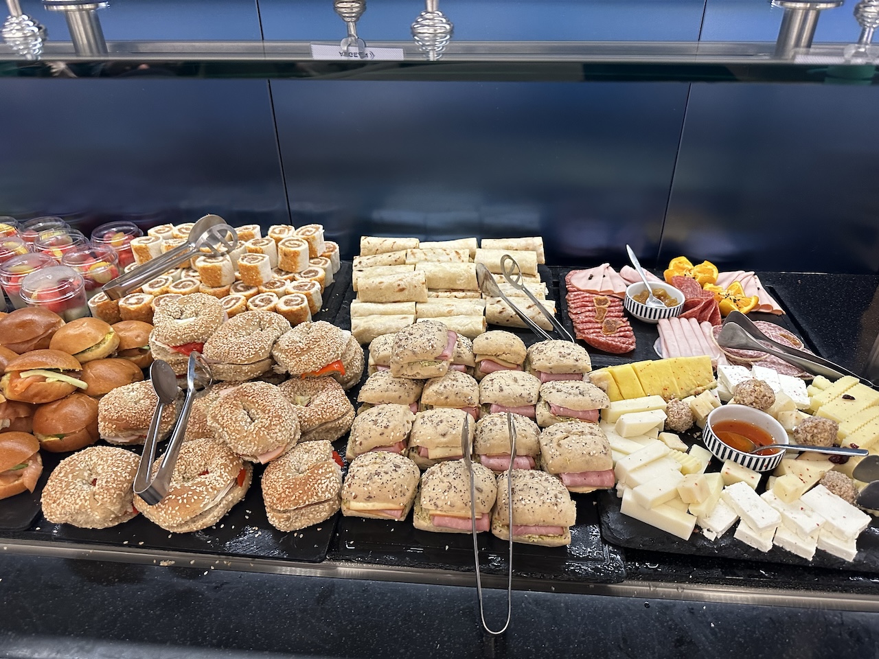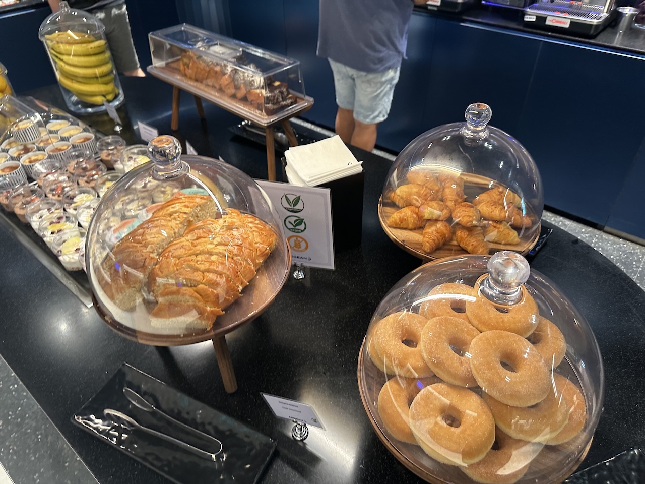 Zu der zeit meines Besuchs war das Frühstück im Fokus, entsprechend das Angebot am Buffet. Darin: warme Pasteten, Eierspeisen, Sandwiches, Snacks, Obst, Joghurt, Gebäck und Nachtisch.