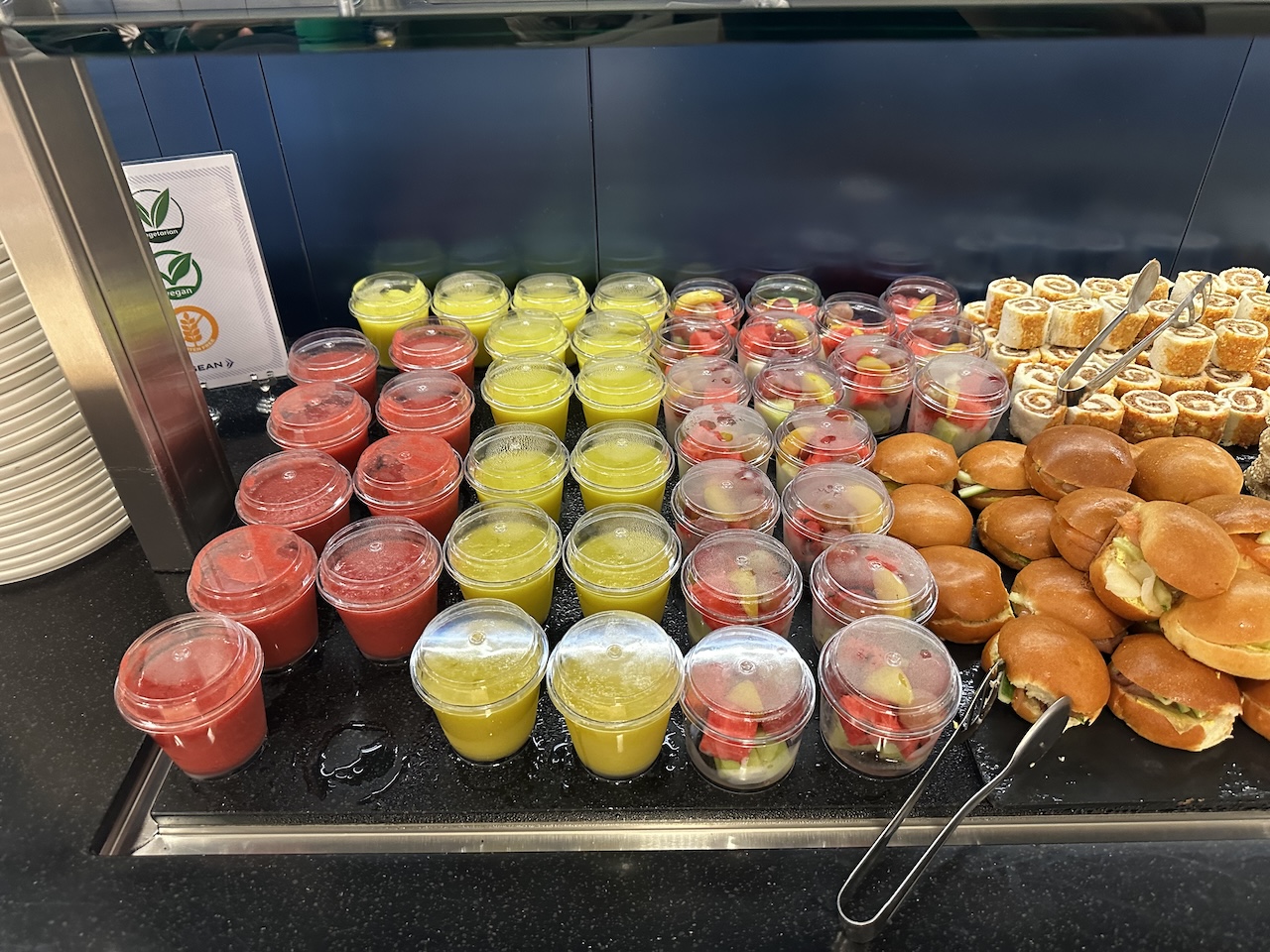 Wie bei den anderen Lounges kann man sich hier kaum über die Auswahl beklagen. Insbesondere das Getränkesortiment ist breit, hier sind frische Säfte, zahlreiche Softdrinks und Heißgetränke vorhanden.