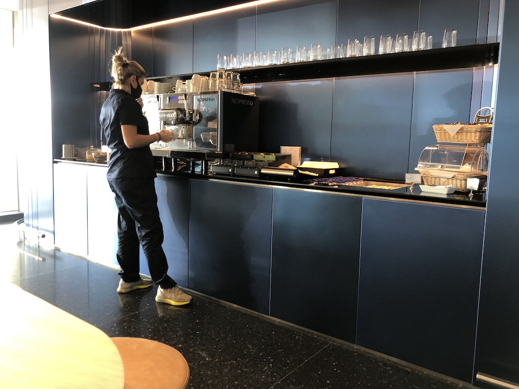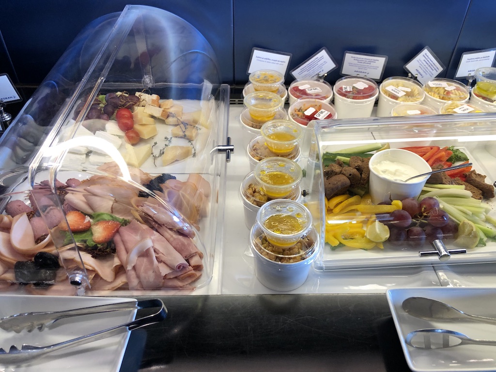 In Sachen Essen und Getränken bietet die neue Lounge in etwa das gewohnte Niveau. Der Buffetbereich ist neu gestaltet und bietet zahlreiche Optionen für eine Stärkung.