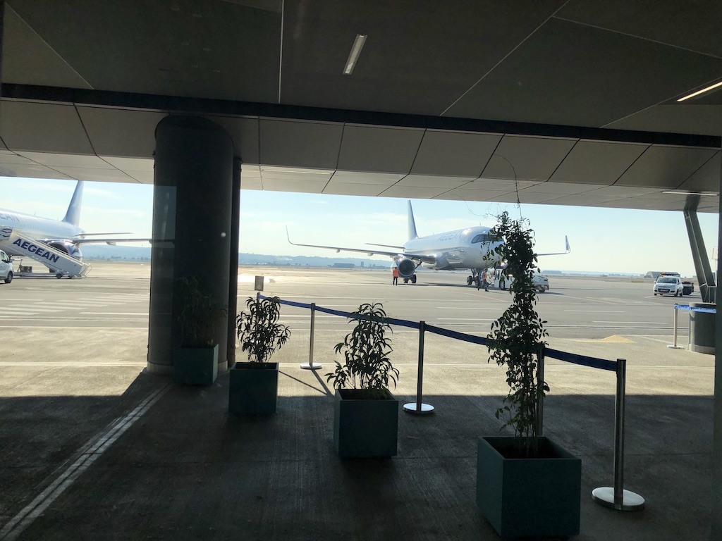 Da keine Fluggastbrücken verbaut wurden, erfolgt das Boarding und Deboarding mit Bussen. Highlight ist das eigene Busgate, welches für Aegean Flüge genutzt wird. Ein riesiger Vorteil und schönes Alleinstellungsmerkmal, Gäste können also bis zum tatsächlichen Beginn des Boardings loungen. Der Aufruf erfolgt vom Personal, dort werden auch die erforderlichen Dokumente überprüft und die Bordkarte gescannt. Je nach Lage des Flugzeugs kann man dann zur Maschine laufen oder in den Bus einsteigen. Gäste der Star Alliance Partner müssen die Lounge verlassen und zum Gate im Terminal laufen.