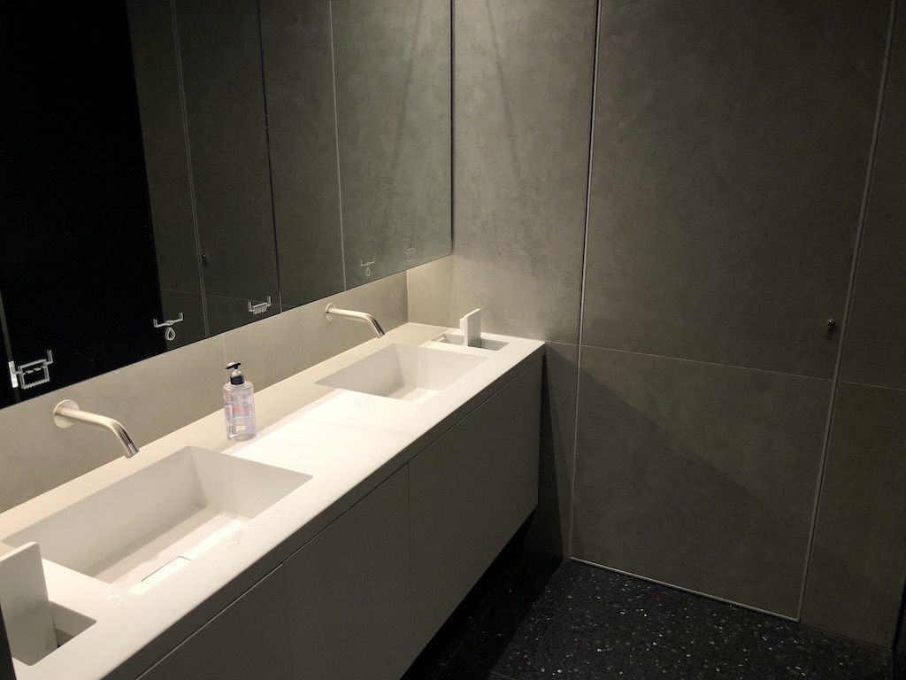 Die Waschräume sind etwas versteckt und klein, für die Größe der Lounge aber ausreichend. Duschen gibt es leider nicht.