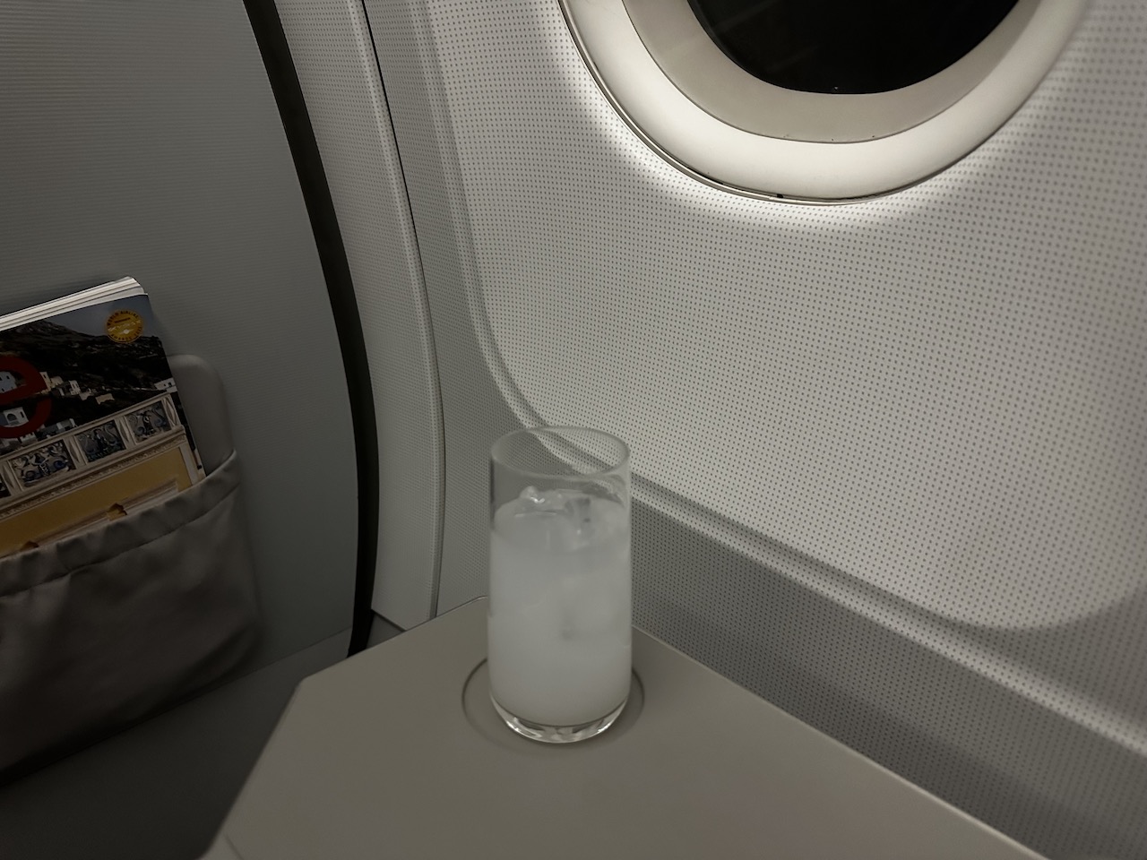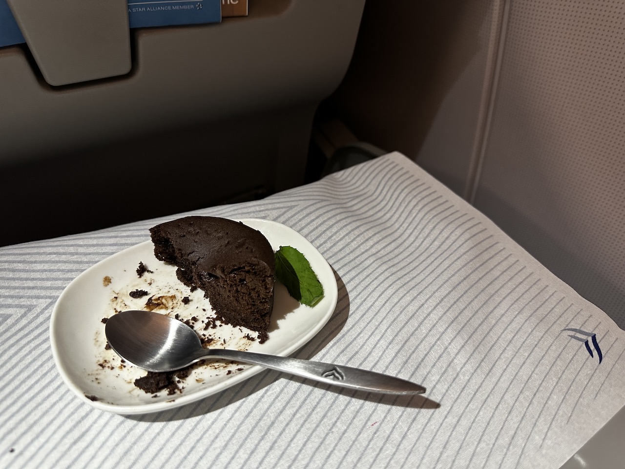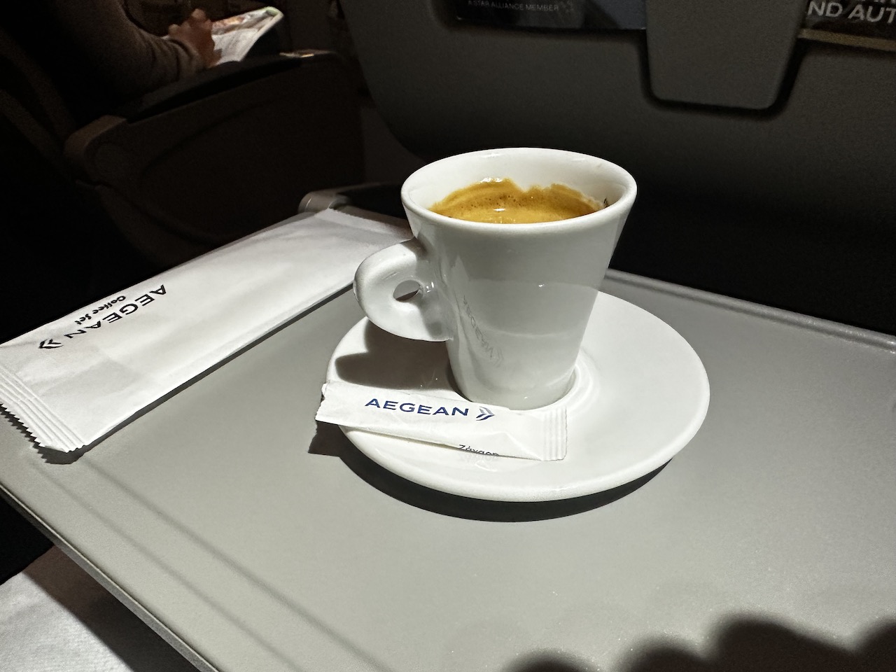 Mit der Espressomaschine an Bord können die Flugbegleiter neben Filterkaffee und Tee auch Espresso bzw. Cappuccino zubereiten, nicht nur für mich immer ein perfekter Abschluss nach der Mahlzeit.