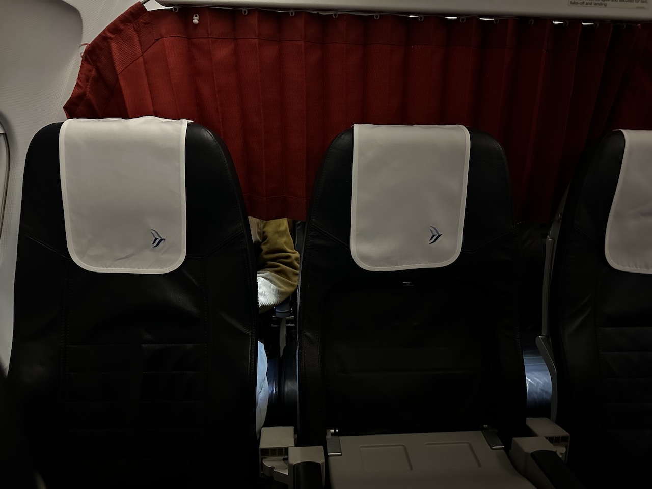 Wir hatten heute bei beide Male die ältere Kabine, hier war die ältere Sitzgeneration installiert. Leider gab es auch keinen Router an Bord, mit dem Internet kann Aegean nämlich sonst ziemlich gut punkten. Die Geschwindigkeit ist schnell, Kunden der Business Class und Statusgäste können dieses kostenlos nutzen.
