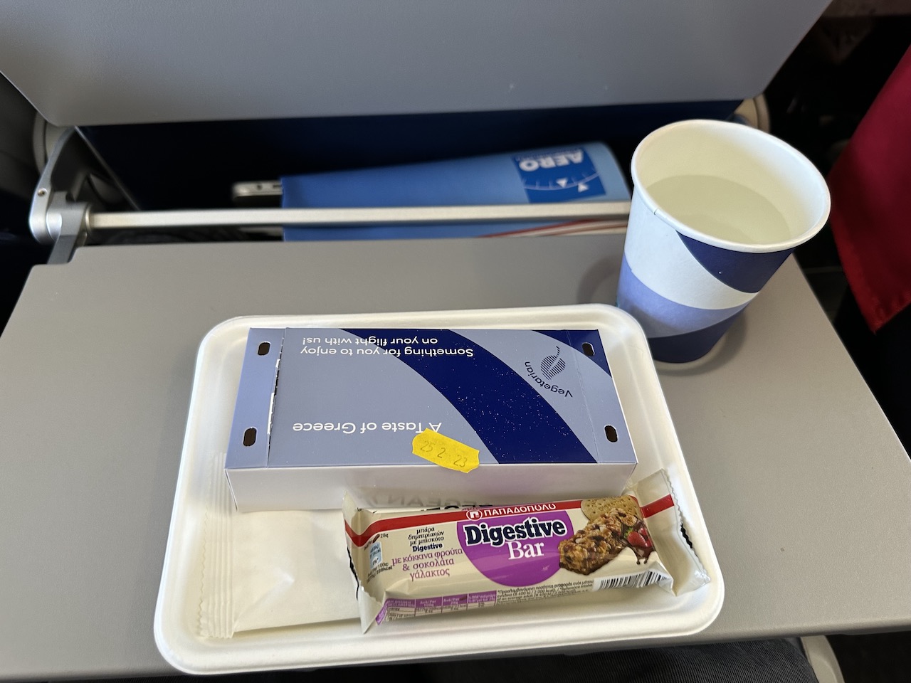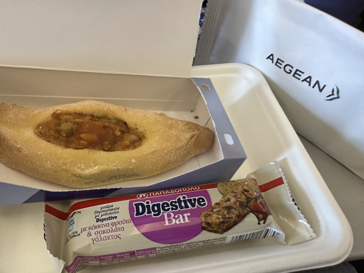 Dazu wurden Getränke gereicht- das Sortiment beinhaltet Softdrinks, Heißgetränke sowie Bier und Wein. Mein Nachbar hatte Hunger und wollte Chips kaufen, ein Buy on Board Angebot gibt es bei Aegean allerdings (noch) nicht.