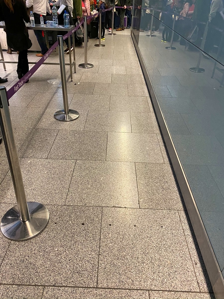 Der Flug nach Frankfurt ging nicht von Terminal 1, sondern von Terminal 2. In der Lounge war der Fußweg mit 5 Minuten angegeben. Schafft man auch, allerdings nur wenn man a) sportlich ist und b) das Meer an anderen Reisenden und Duty Free Artikeln teilen kann wie einst Moses das Meer.