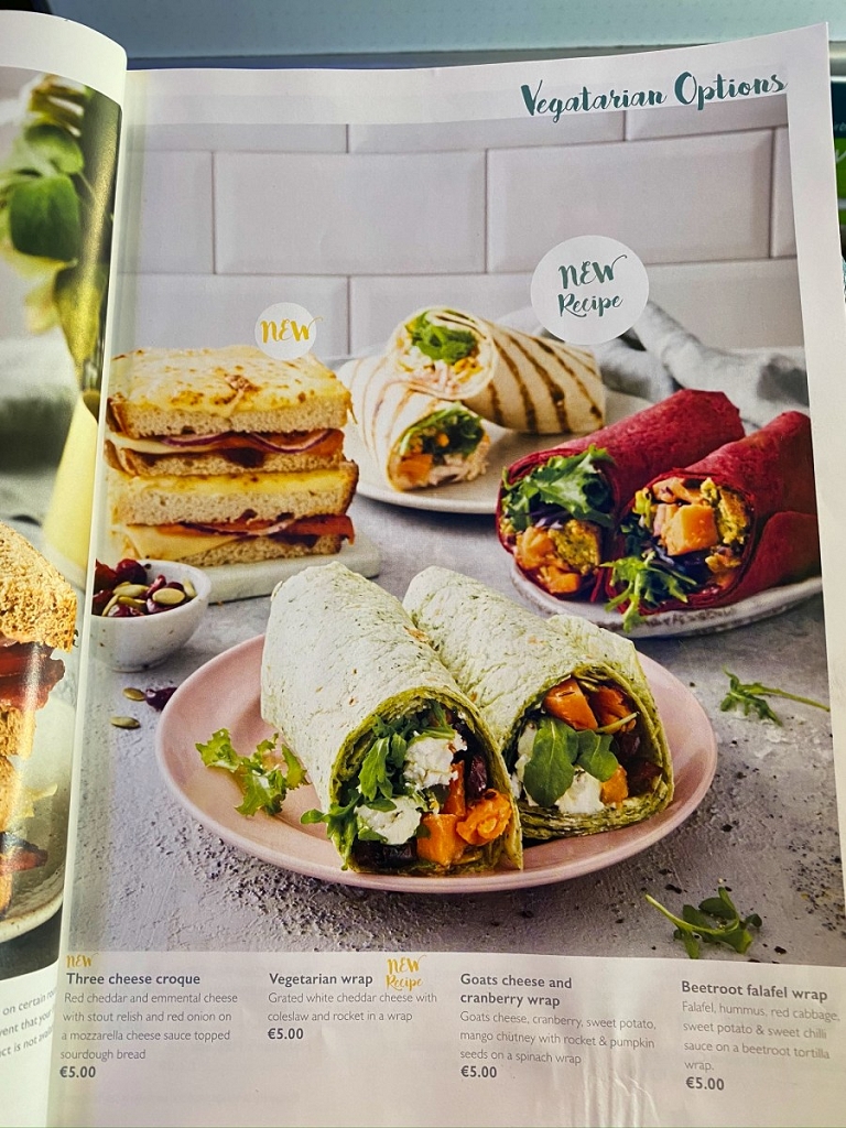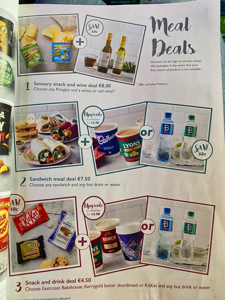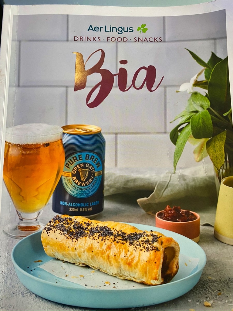 Kurz darauf wurde mein Wrap aus der hinteren Galley nach vorne gebracht. Sah toll aus. Aer Lingus sollte eine Eisdiele aufmachen, denn der Wrap war praktisch noch tiefgefroren. Aber wenn man ein bisschen drauf herumkaut wird’s ja warm. Schlecht geschmeckt hat’s nicht, aber das Premiumgefühl wollte sich nicht so recht einstellen.