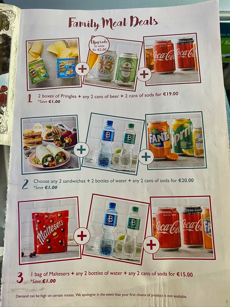 Für mich hatte die Suche nach dem Bordmenü schon Unterhaltungswert. Ich fand es zunächst nicht, bis ich das Bordmagazin durchblätterte und feststellte, dass das Menü der hintere Bereich des Bordmagazins ist. Wenn man es dann noch um 180° dreht, ist alles in Butter. Da mein Ticket ja ein Getränk und einen „Snack“ vom Bordmenü beinhaltete erdreistete ich mich zu Beginn des Service bei den Flugbegleiterinnen nachzufragen, aus welchen Snacks ich denn auswählen dürfte. Die Dame verdrehte die Augen und keifte mir ein „egal was“ entgegen. Mit der nächsten Aktion machte ich mich endgültig zum Feind in Reihe 1: ich bat um einen Augenblick, um das Bordmenü zu studieren und mich dann zu entscheiden. Man schüttelte mit dem Kopf, während man noch ein knappes „Sicherlich“ rauspresste.