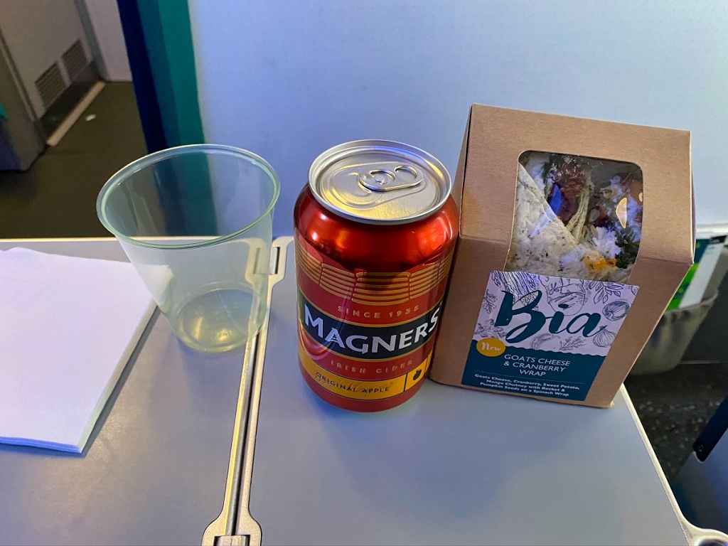 Ich entschied mich für einen vegetarischen Wrap und ein alkoholfreies Bier. Auch das verbesserte die Beziehung zu den Flugbegleiterinnen nicht, denn auch nach 5 Minuten intensiver Suche, war kein alkoholfreies Bier in der vorderen Galley verfügbar. In der hinteren Galley nachzufragen fand man wohl überflüssig und man bot mir kurzerhand ein Bier mit Alkohol an. Ich entschied mich dann für einen Cider.