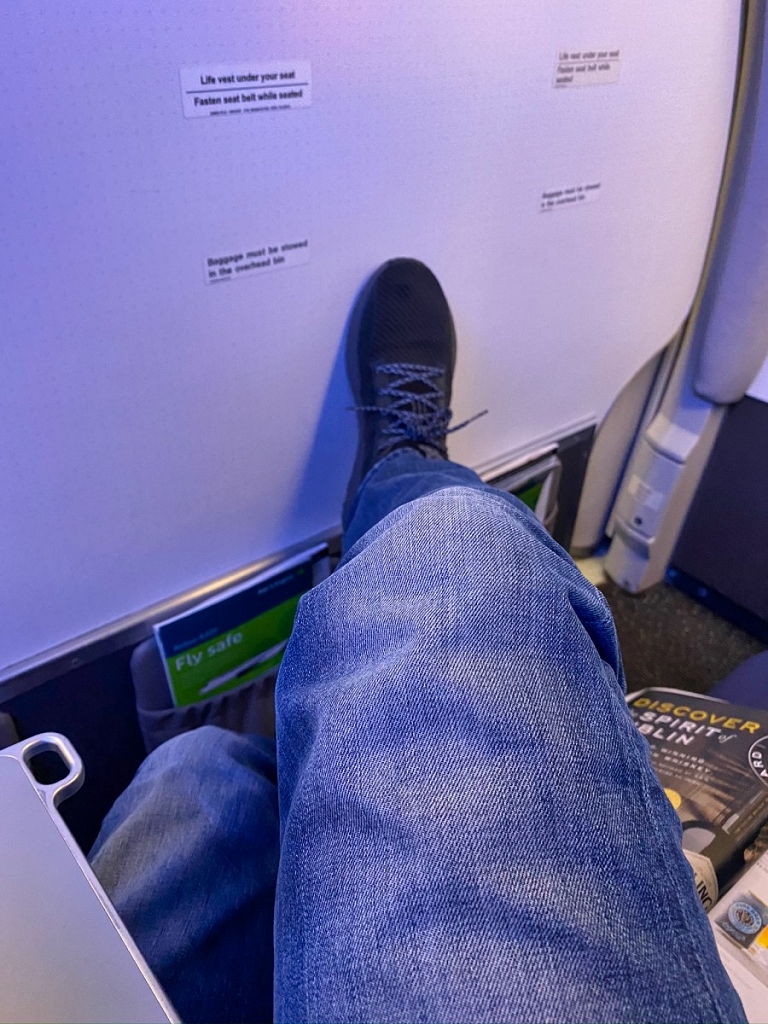 Wo Aer Lingus allerdings recht hat, ist die Beinfreiheit. Die ist in der Premium Economy tatsächlich größer, allerdings nur, wenn man nicht die Fußfreiheit mit einrechnet. Die ist in der Premium Economy nämlich geringer.