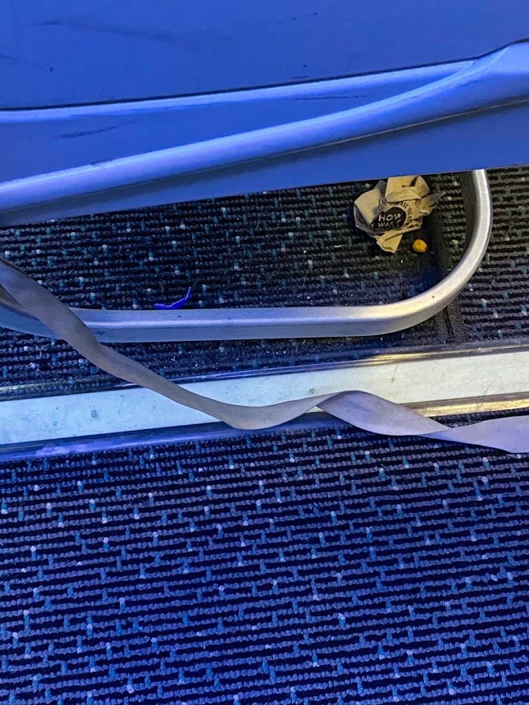 Auf dem Boden lagen noch eine Serviette und Erdnüsse von einem (oder mehreren?) der vorangegangenen Flüge. Entsprechend sah ich mich bestätigt und freute mich immer mehr auf meine Erdnüsse oder Chips. Aber, in der Beschreibung der Premium Economy stand doch etwas vom „Bordmenü“. Und ich begann an meiner Theorie zu zweifeln. Vielleicht gibt es doch mehr als nur einen Minisnack.