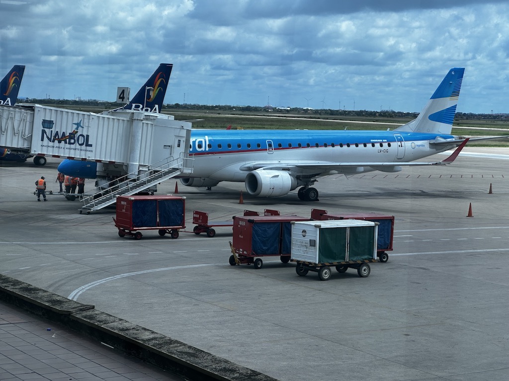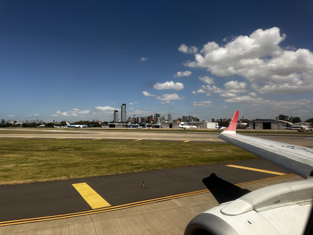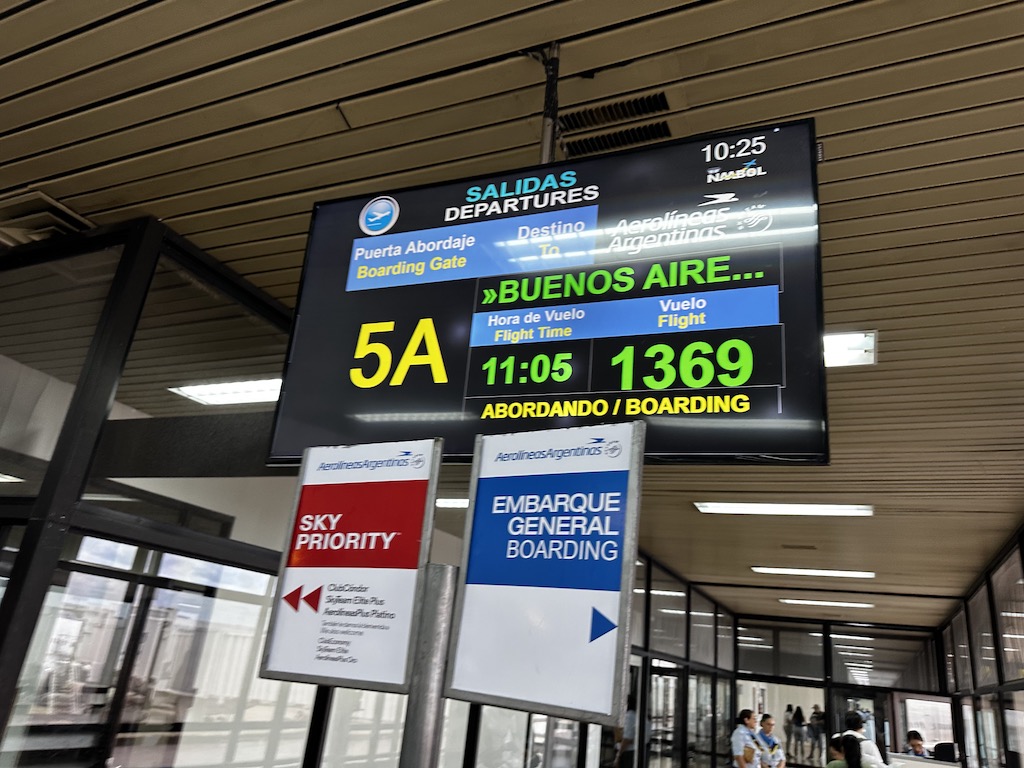 Gut 40 Minuten vor Abflug kam schon der letzte und dringende Aufruf zum Einsteigen, normalerweise fängt man zu diesem Zeitpunkt erst an, Langstreckenflugzeuge zu boarden. Der Einsteigevorgang war bei dem 100-Sitzer aber schon fast beendet, mit der Hektik war es erst in der Luft vorbei. Alles sinnlos und unnötig, wahrscheinlich hatten sich die Piloten noch bestätigt gefühlt, als wir 45 Minuten vor der geplanten Zeit am Ziel in Buenos Aires aufsetzten.