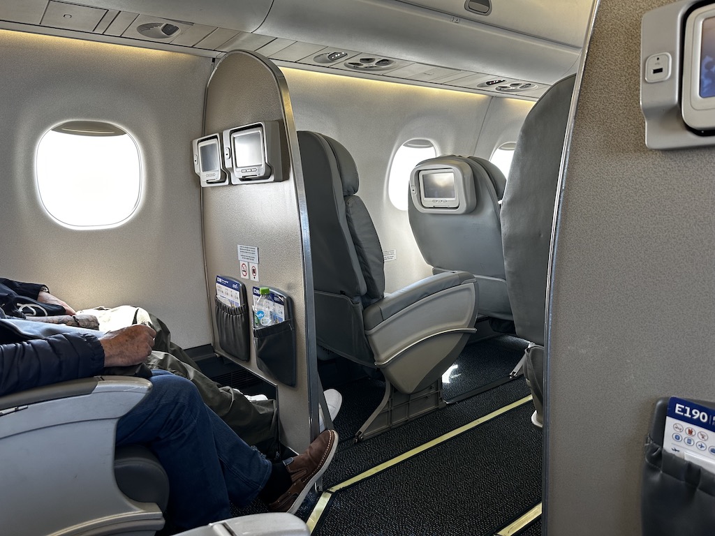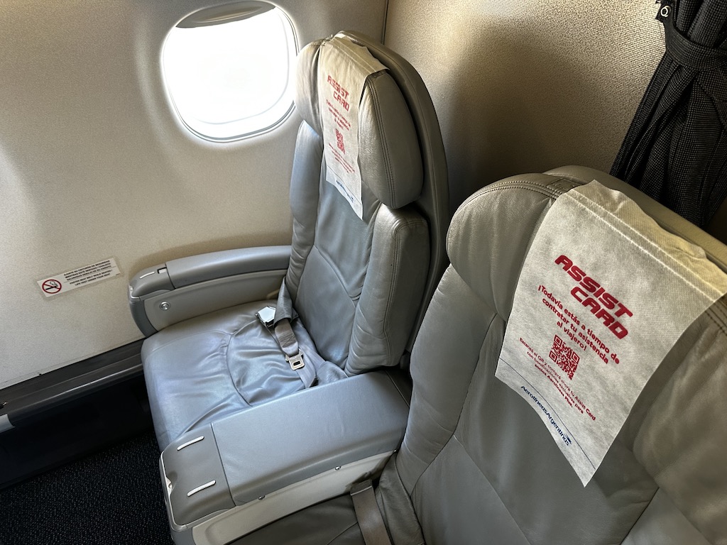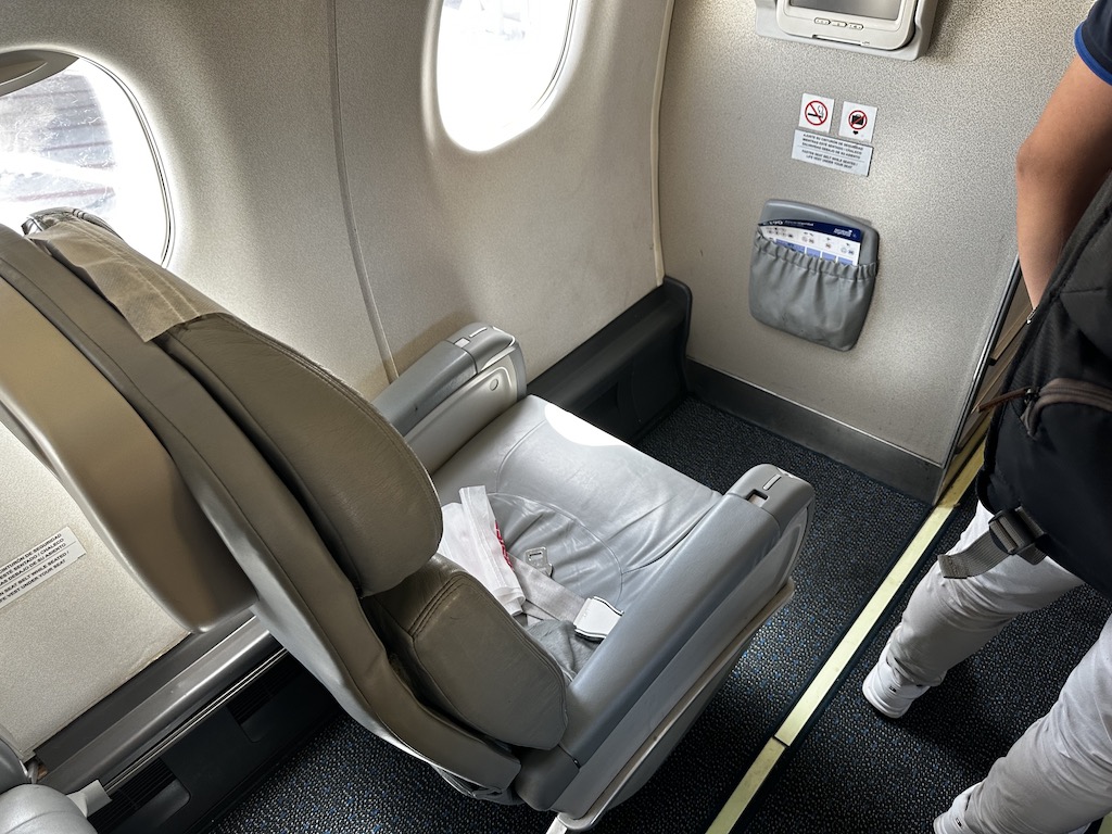 Die Maschine, die von Tochter Austral betrieben wurde, war fast ausgebucht, lediglich in der vorderen Klasse waren einige Plätze verfügbar. Dort sind die breiten Sessel in einer 1-2 Anordnung verbaut.
